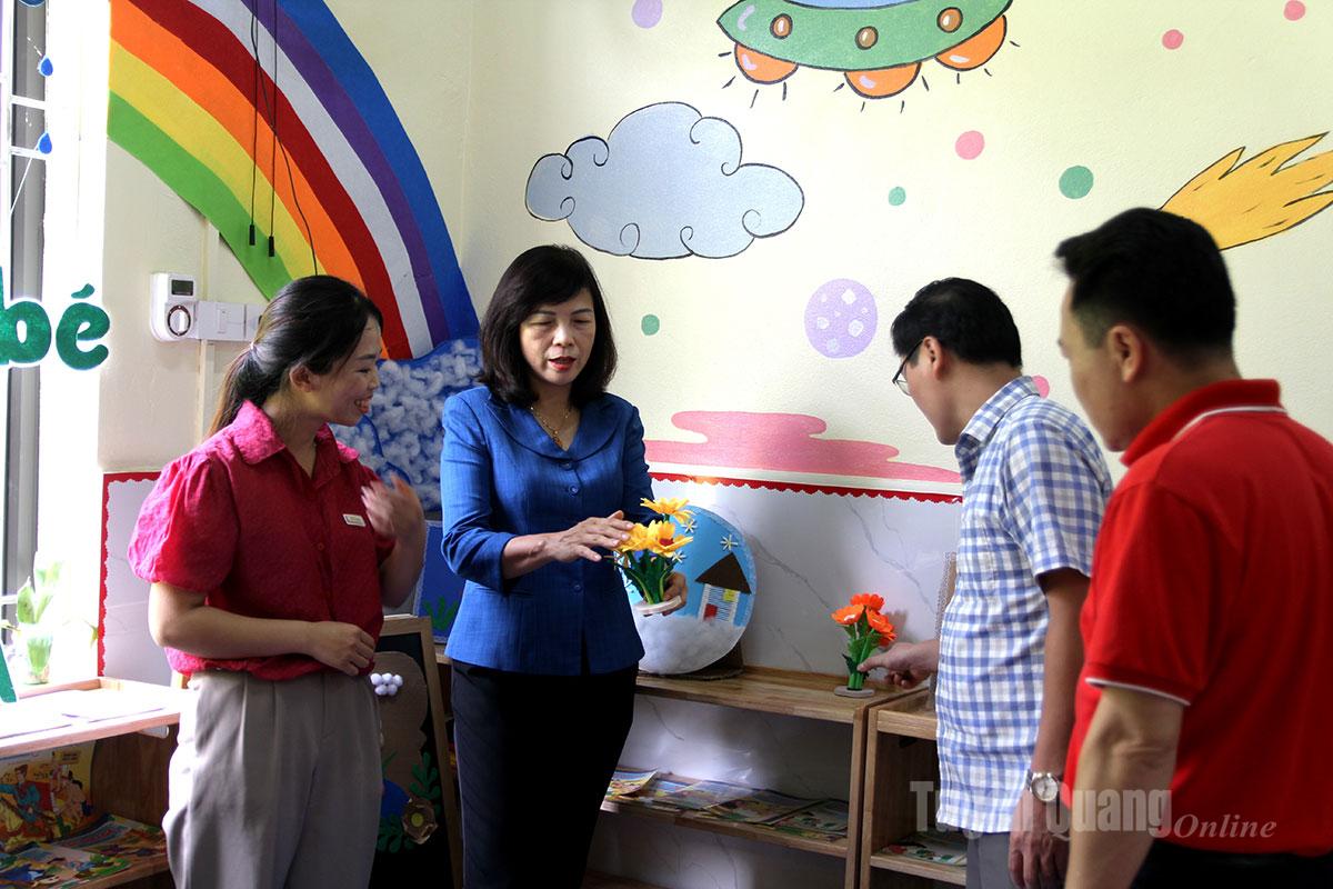 Dịp này, đồng chí Phạm Thị Minh Xuân cũng đã đến thăm cơ sở vật chất, động viên các giáo viên đang công tác tại điểm trường chính và điểm trường thôn Chương, Trường Mầm non Hùng Lợi.