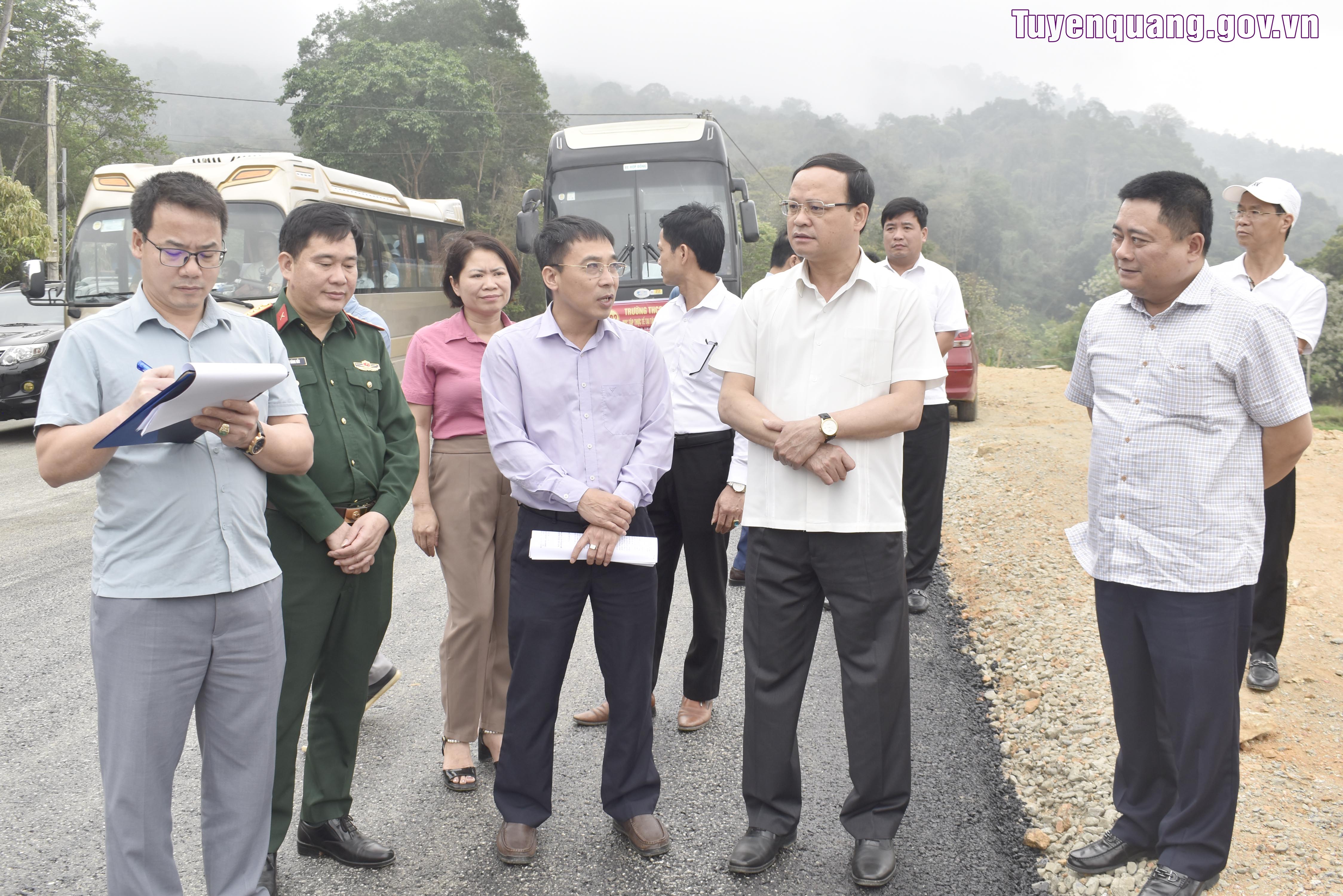 Phó Chủ tịch Thường trực UBND tỉnh Nguyễn Mạnh Tuấn kiểm tra tiến độ thi công Dự án cải tạo, nâng cấp tuyến đường cách mạng từ xã Tân Trào đến Trung Yên, đoạn qua Khu di tích quốc gia đặc biệt Tân Trào.