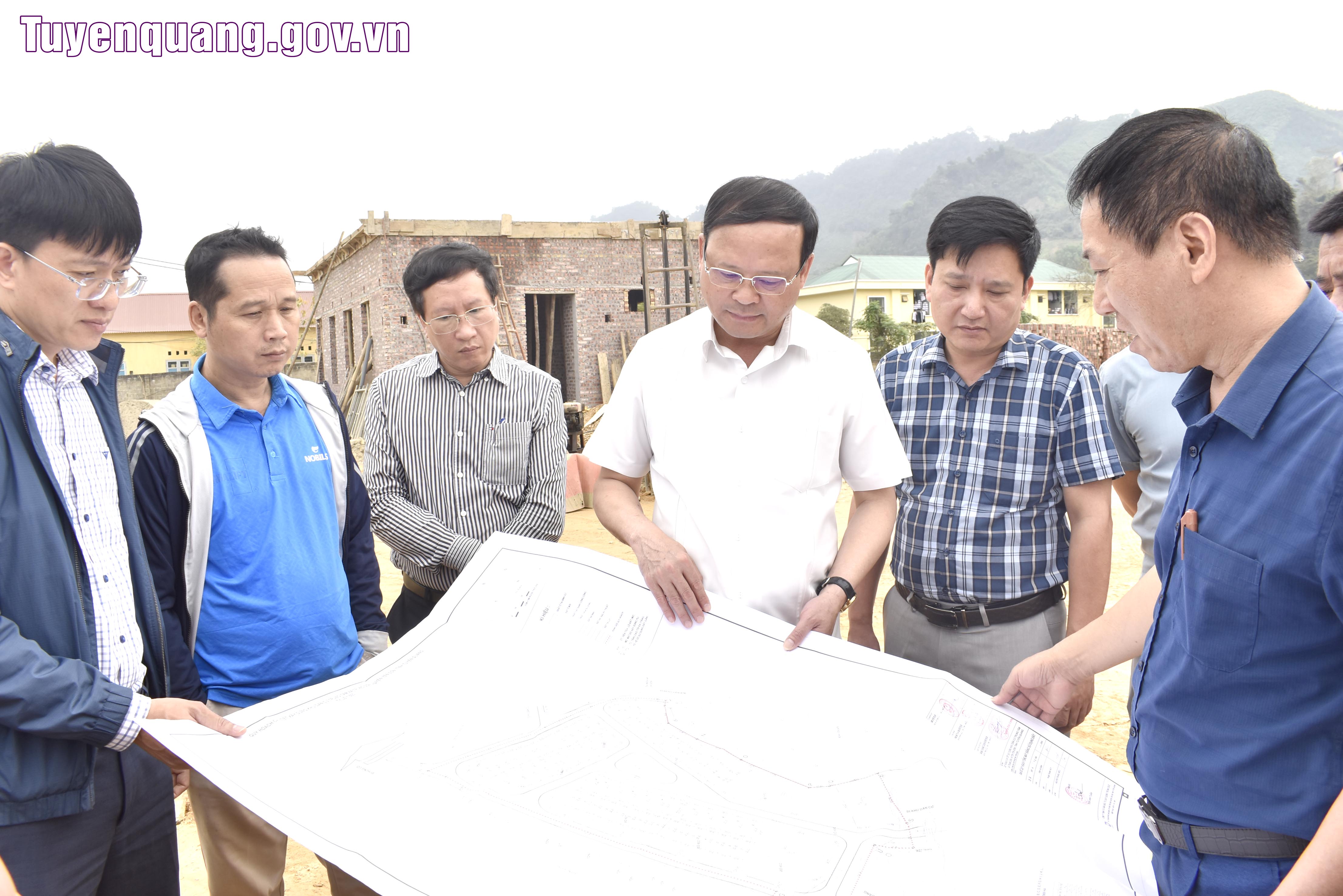 Phó Chủ tịch Thường trực UBND tỉnh Nguyễn Mạnh Tuấn kiểm tra tiến độ xây dựng Khu tái định cư xã Hùng Lợi.