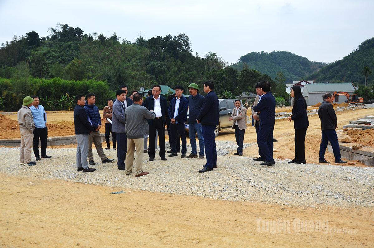 Phó Chủ tịch Thường trực UBND tỉnh Nguyễn Mạnh Tuấn kiểm tra tiến độ khu tái định cư tại xã Hùng Lợi.