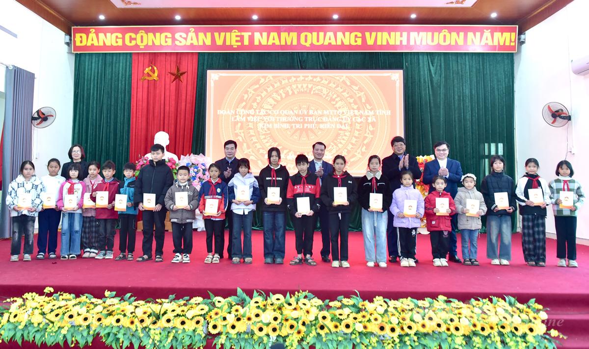 Nhân dịp này, đồng chí Hà Trung Kiên và các đại biểu đã trao 60 suất quà tặng học sinh có hoàn cảnh khó khăn trên địa bàn các xã Kim Bình, Kiên Đài, Tri Phú với tổng trị giá 30 triệu đồng.