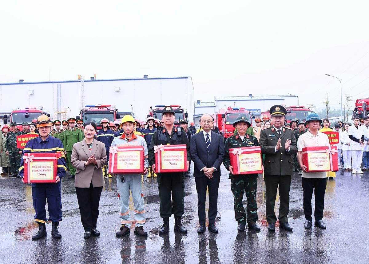 Dự chỉ đạo diễn tập có các đồng chí: Vương Ngọc Hà, Ủy viên Ban Thường vụ Tỉnh ủy, Phó Chủ tịch UBND tỉnh, Trưởng ban Chỉ đạo diễn tập; Thiếu tướng Nguyễn Đức Thuận, Ủy viên Ban Thường vụ Tỉnh ủy, Giám đốc Công an tỉnh, Phó Trưởng ban Thường trực Ban Chỉ đạo diễn tập; các đồng chí thành viên Ban Chỉ đạo và hơn 300 người, gần 40 phương tiện chuyên dụng của các lực lượng Công an, Quân đội, Y tế, Điện lực của tỉnh...