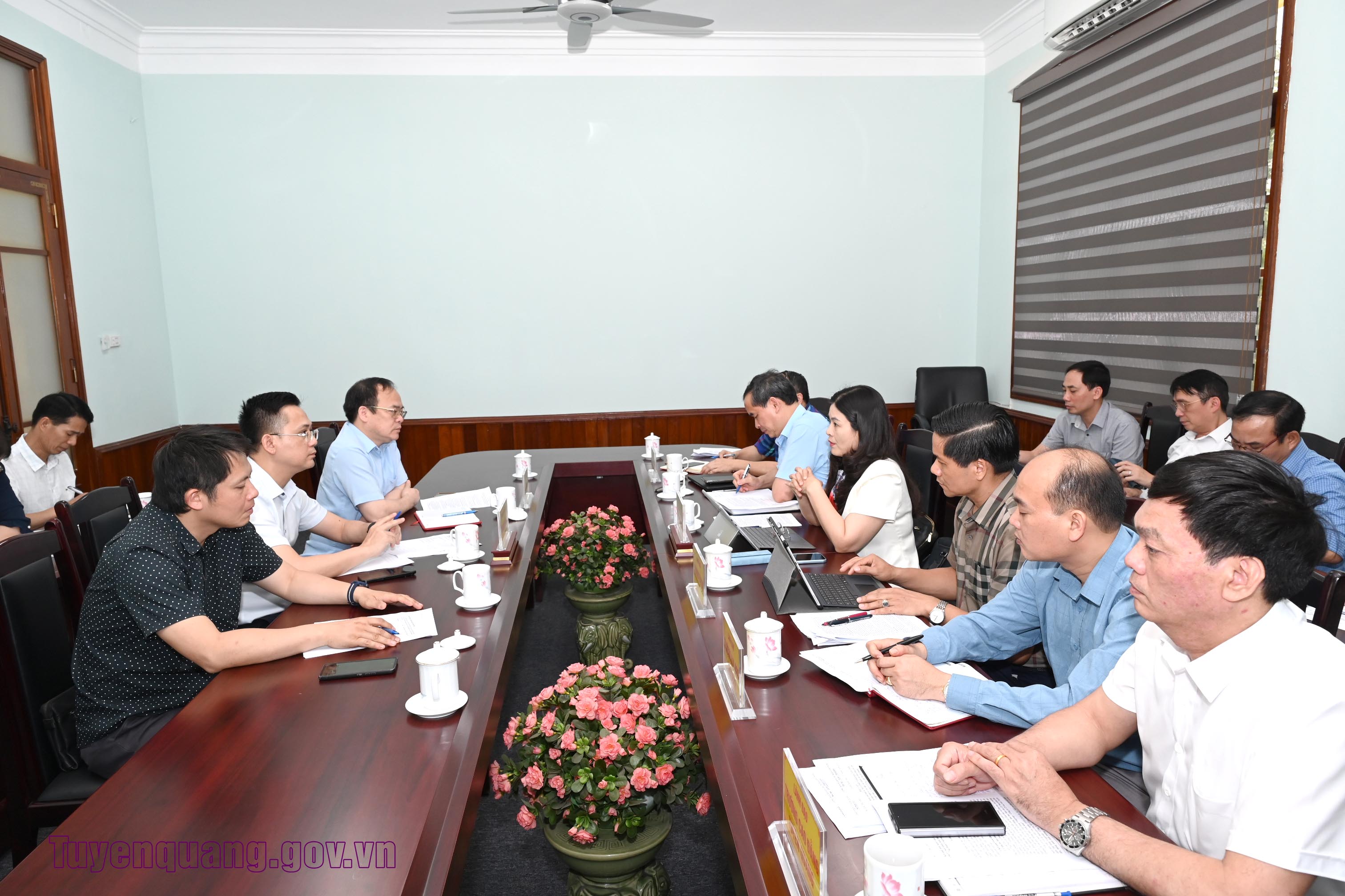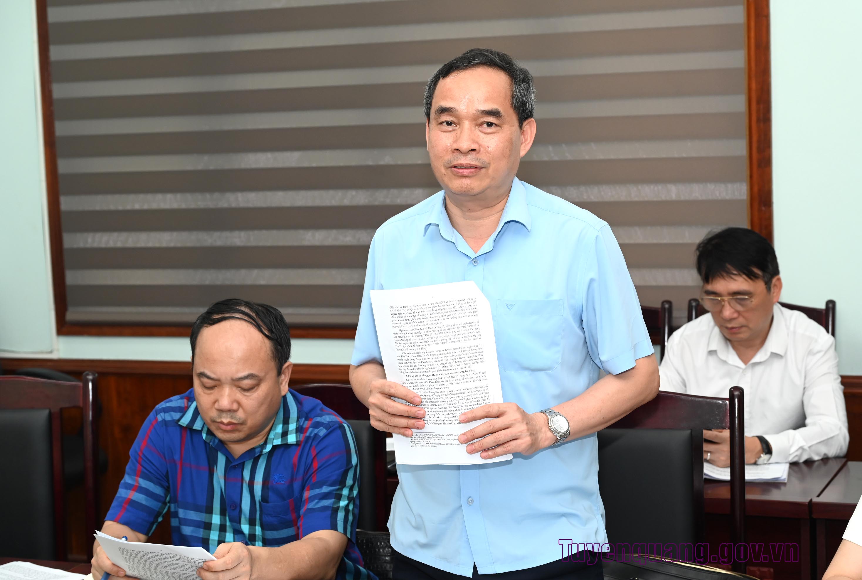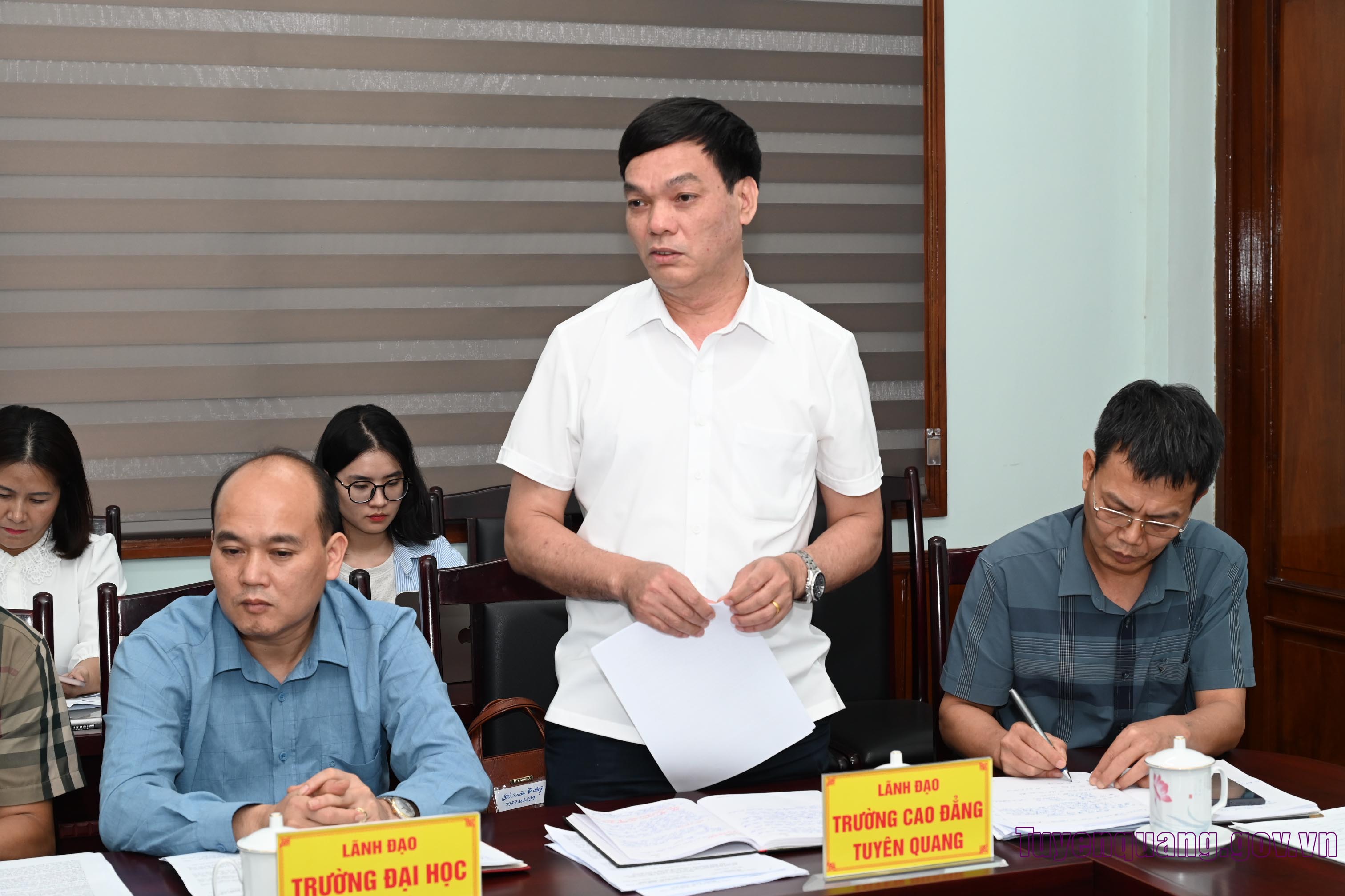 Lãnh đạo Trường Cao đẳng Tuyên Quang phát biểu, đề xuất các giải pháp nâng cao chất lượng đào tạo và gắn kết cung ứng nguồn nhân lực với nhu cầu doanh nghiệp tại buổi làm việc.