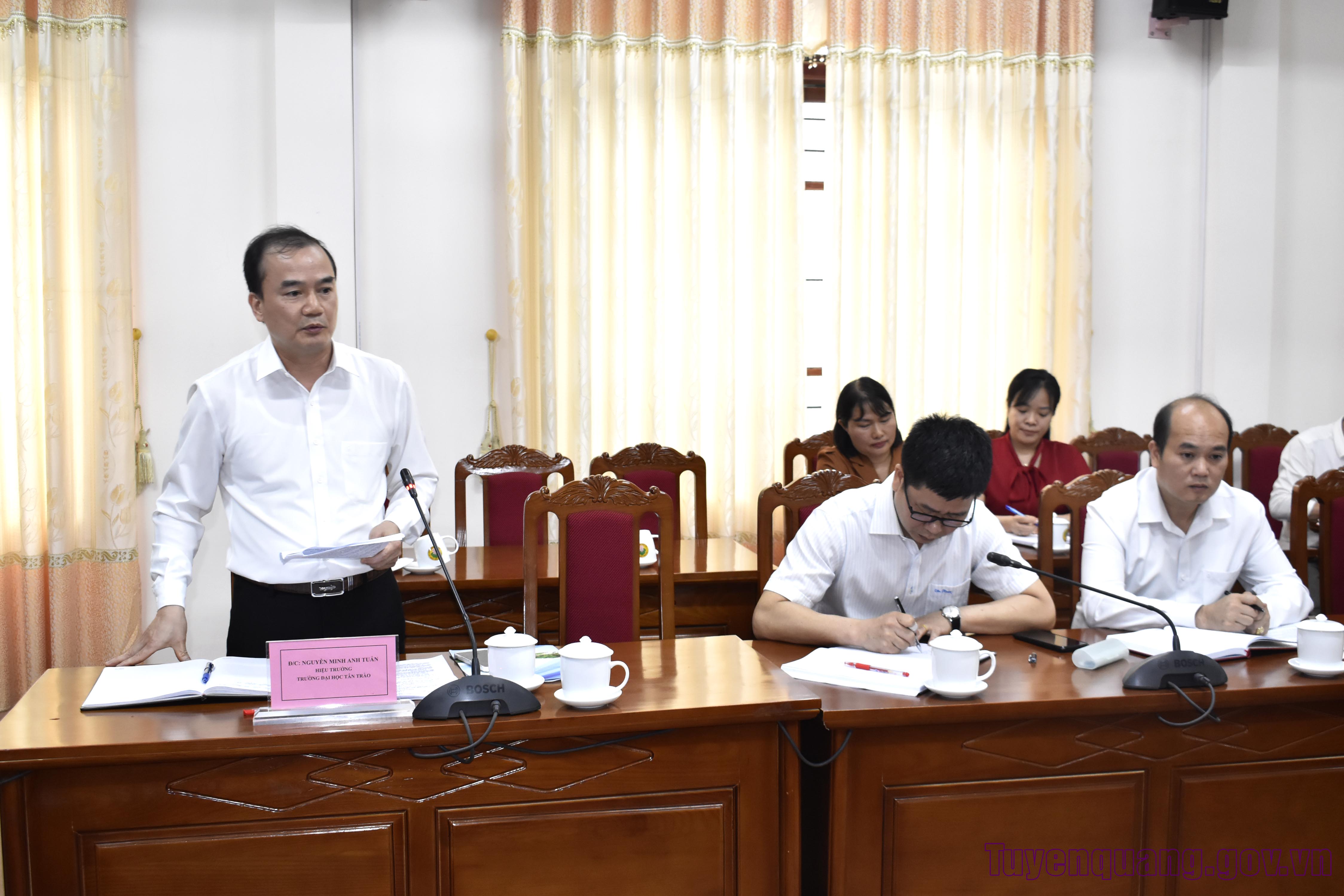 Phó Chủ tịch UBND tỉnh Vương Ngọc Hà chủ trì buổi làm việc với Trường Đại học Tân Trào về định hướng phát triển giáo dục và đào tạo.
