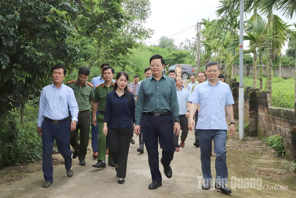 Phó Thủ tướng Chính phủ Mai Văn Chính và Bí thư Tỉnh ủy Hầu A Lềnh cùng đoàn công tác đến kiểm tra mưa lũ tại thôn Tân Tiến, xã Tân Quang.