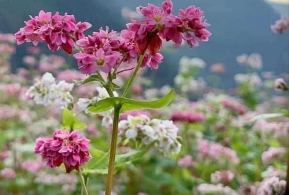 Hoa Tam giác mạch nhỏ, cánh nhọn, mỏng nhưng đủ sức làm dịu đi vẻ thô ráp của đá tai mèo. Ban đầu hoa trắng, rồi hồng nhạt, cuối mùa lại chuyển tím, như những cung bậc cảm xúc của đất trời nơi biên viễn. Giữa không gian mênh mông ấy, sắc hoa như lời nhắn gửi về niềm tin, về ý chí con người bám đất, bám đá mà sống, mà yêu cuộc đời.