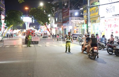 Công an thành phố Tuyên Quang lập các chốt kiểm soát, phân luồng giao thông vào mỗi buổi tối trong dịp lễ hội.