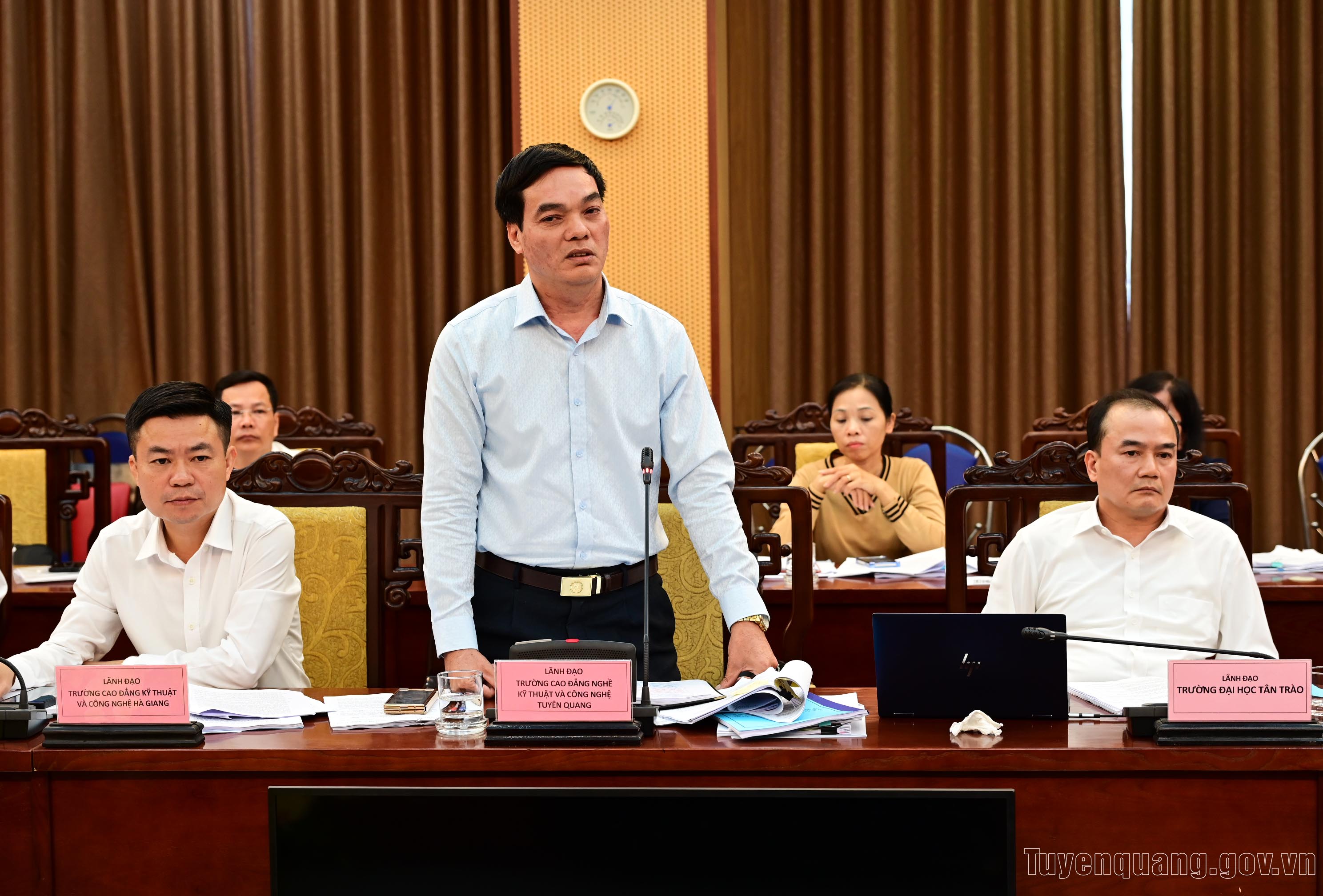 Lãnh đạo Trường Cao đẳng nghề Kỹ thuật - Công nghệ Tuyên Quang phát biểu tại hội nghị.