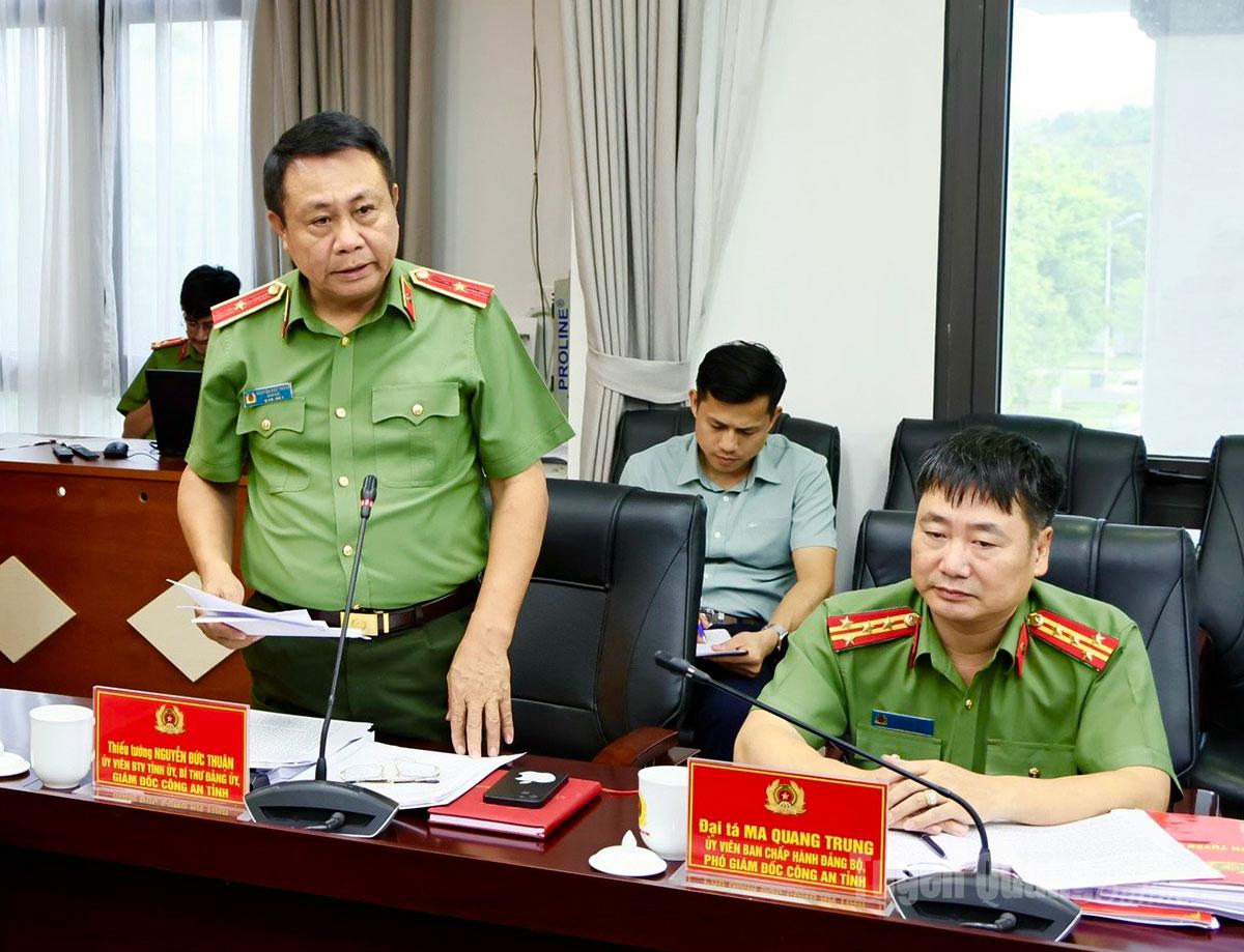 Thiếu tướng Nguyễn Đức Thuận, Giám đốc Công an tỉnh phát biểu tại Hội nghị.