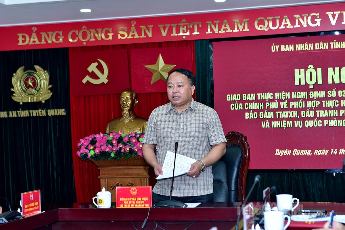 Đồng chí Phan Huy Ngọc, Phó Bí thư Tỉnh ủy, Chủ tịch UBND tỉnh dự và chủ trì Hội nghị. Cùng dự có Thiếu tướng Nguyễn Đức Thuận, Ủy viên Ban Thường vụ Tỉnh ủy, Giám đốc Công an tỉnh; lãnh đạo Văn phòng Tỉnh ủy, Bộ Chỉ huy Quân sự tỉnh, Công an tỉnh và đại diện một số đơn vị thuộc Bộ Quốc phòng, Bộ Công an đóng quân trên địa bàn.