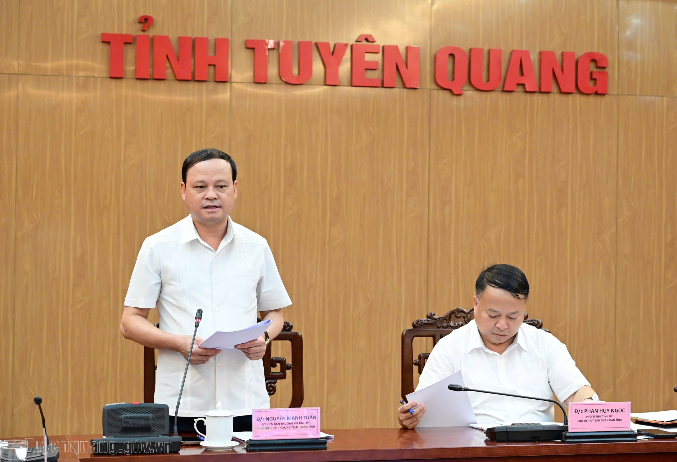 Đồng chí Phó Chủ tịch Thường trực UBND tỉnh Nguyễn Mạnh Tuấn định hướng phần thảo luận.