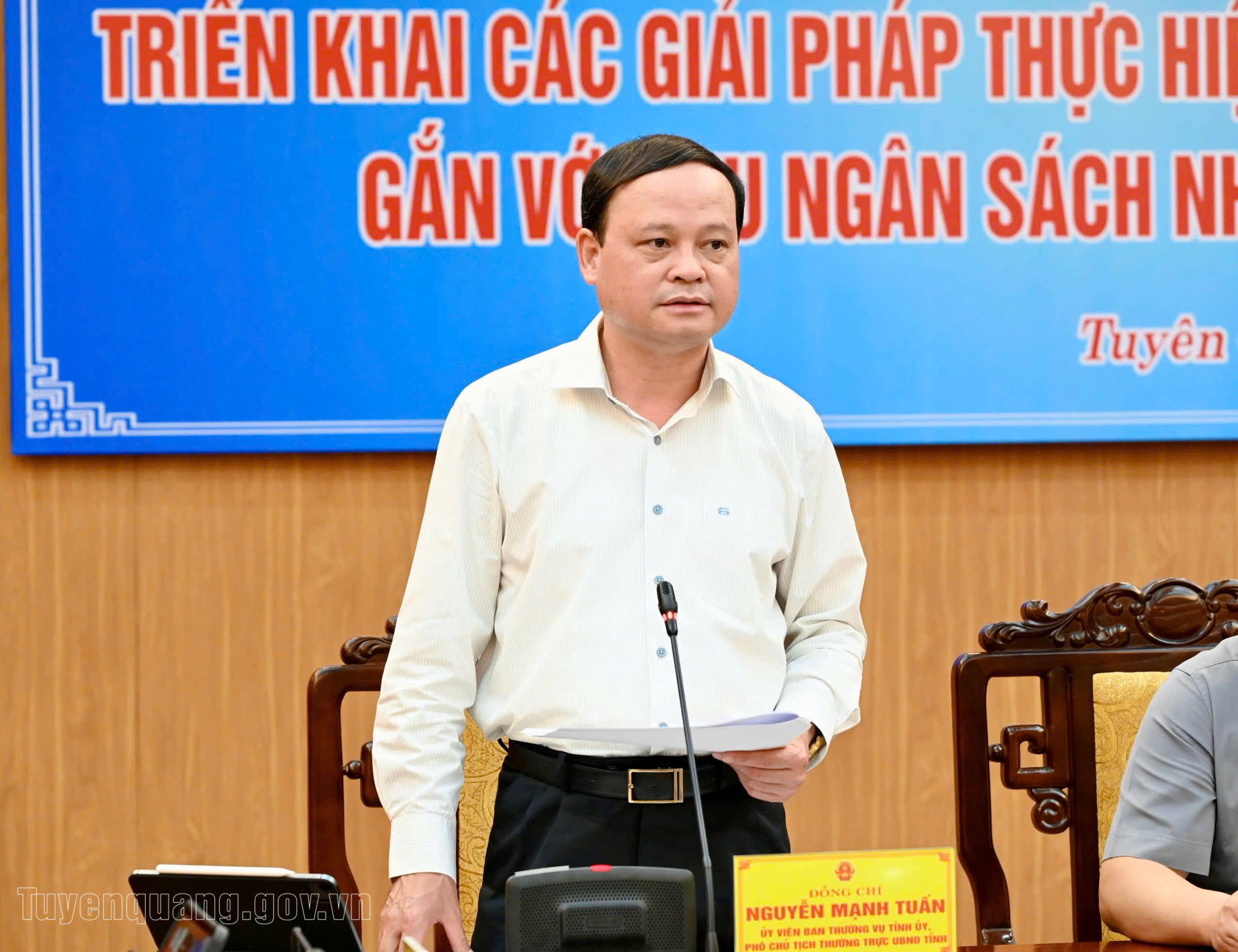 Đồng chí Phó Chủ tịch Thường trực UBND tỉnh Nguyễn Mạnh Tuấn điều hành thảo luận.
