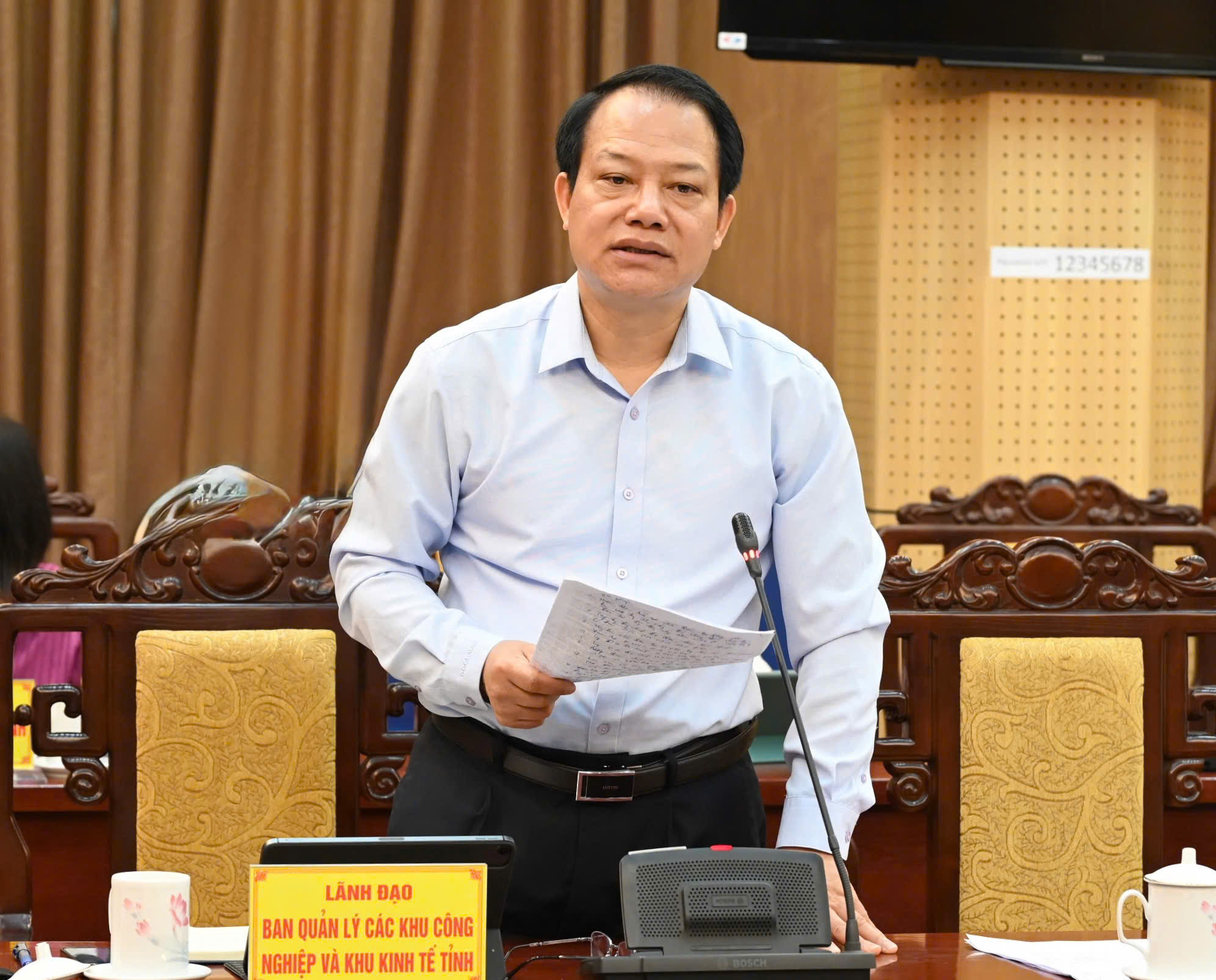 Lãnh đạo Ban quản lý các khu công nghiệp và khu kinh tế tỉnh phát biểu thảo luận.