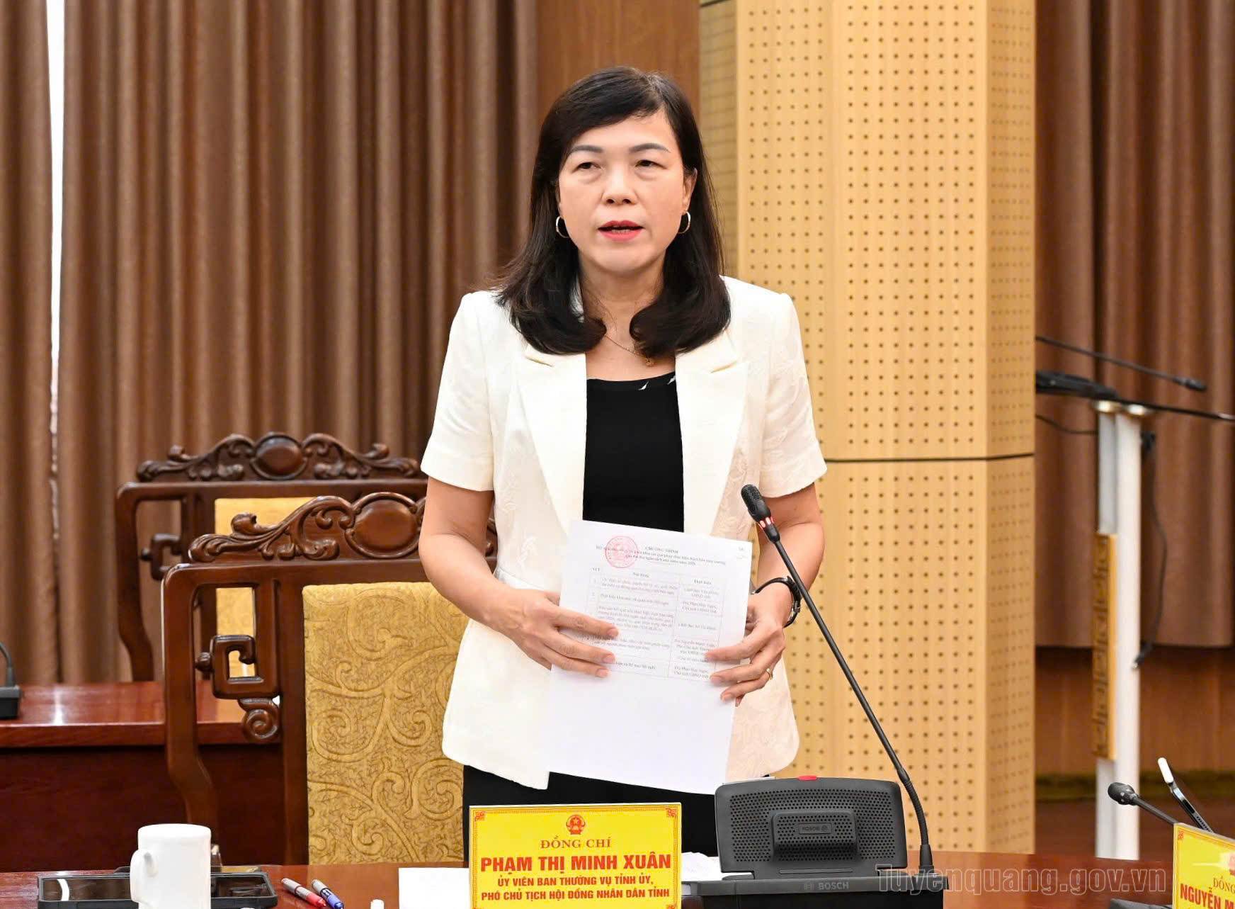 Đồng chí Phó Chủ tịch HĐND tỉnh Phạm Thị Minh Xuân phát biểu thảo luận tại hội nghị.