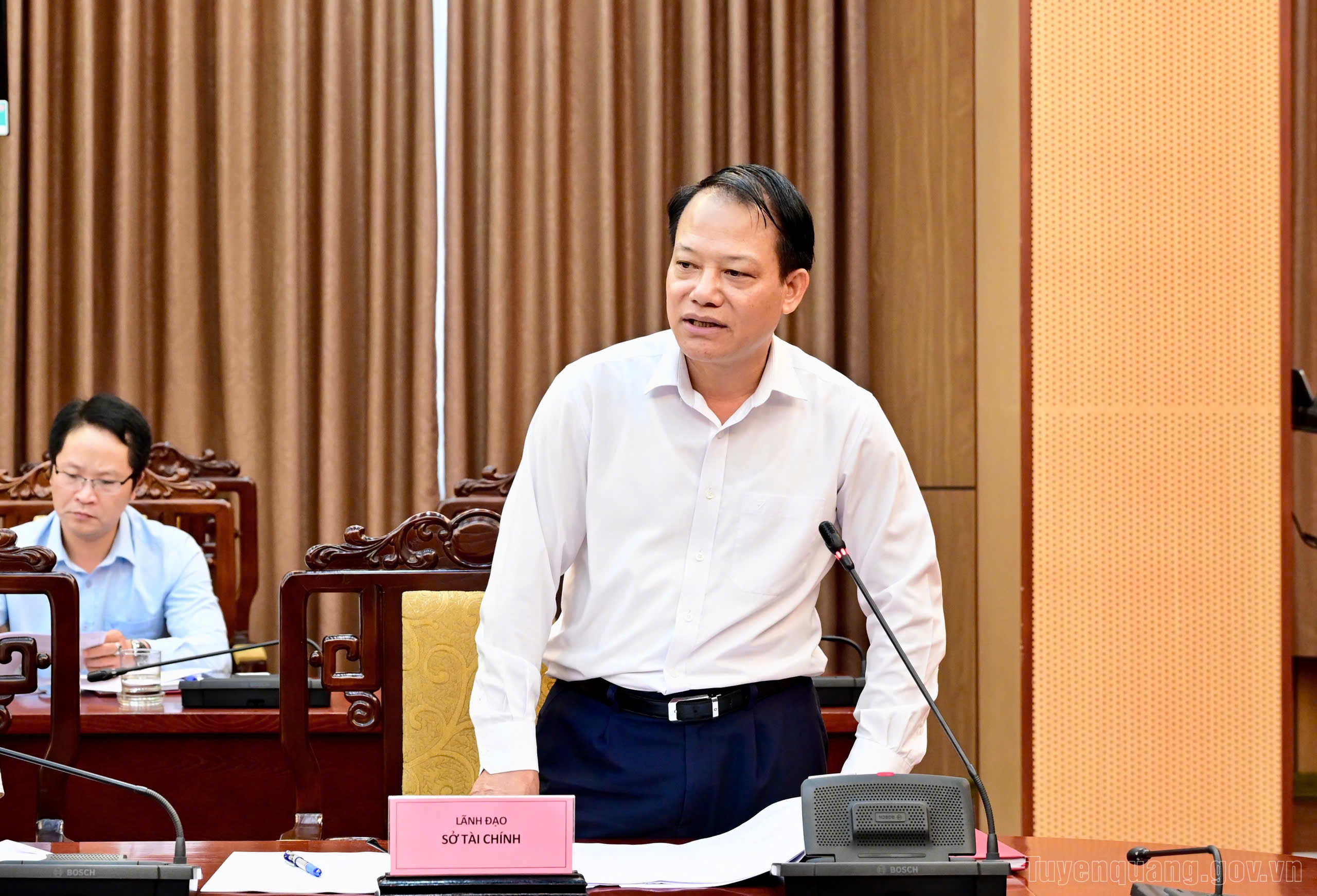 Giám đốc Sở Tài chính báo cáo tại cuộc họp.
