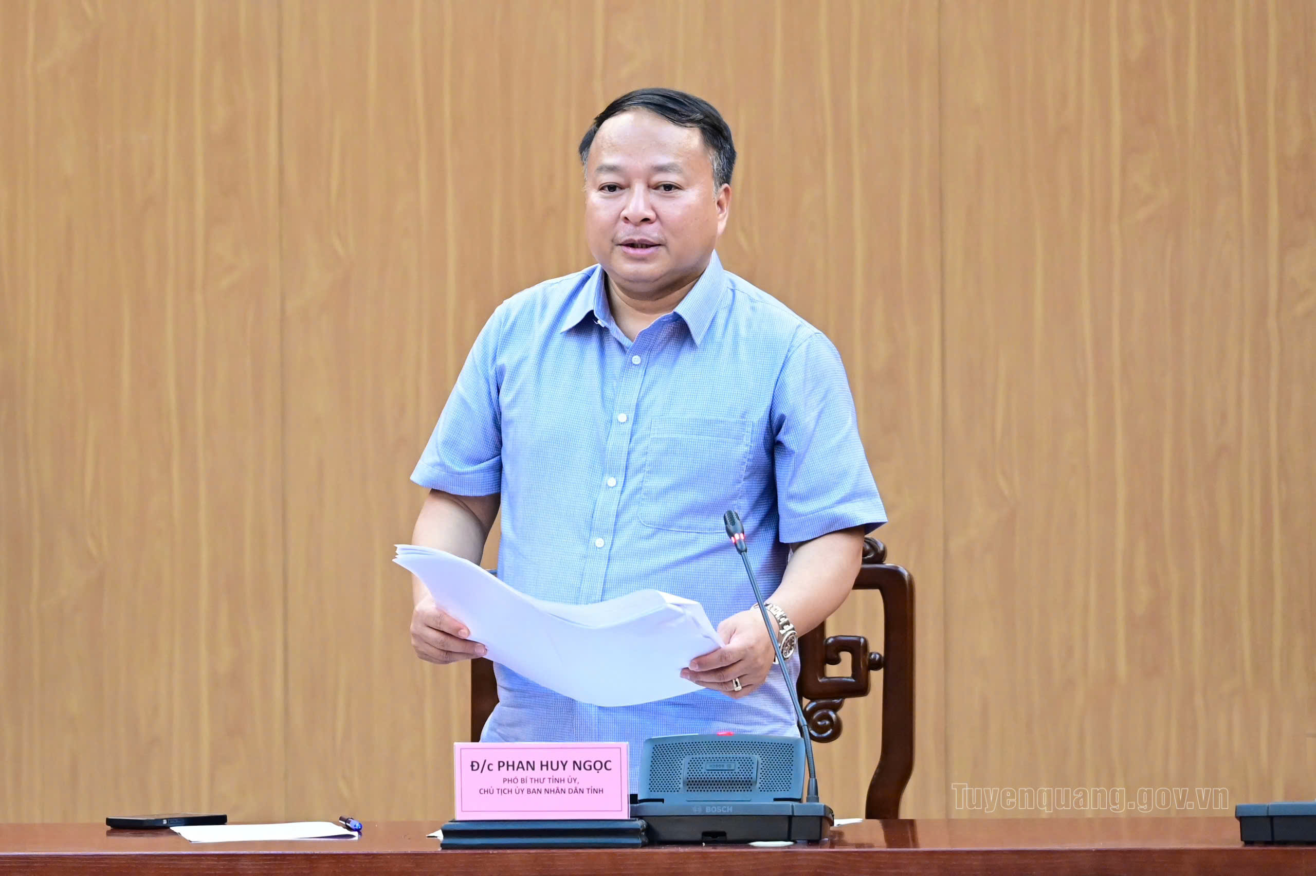 Đồng chí Chủ tịch UBND tỉnh Phan Huy Ngọc phát biểu chỉ đạo tại cuộc họp.
