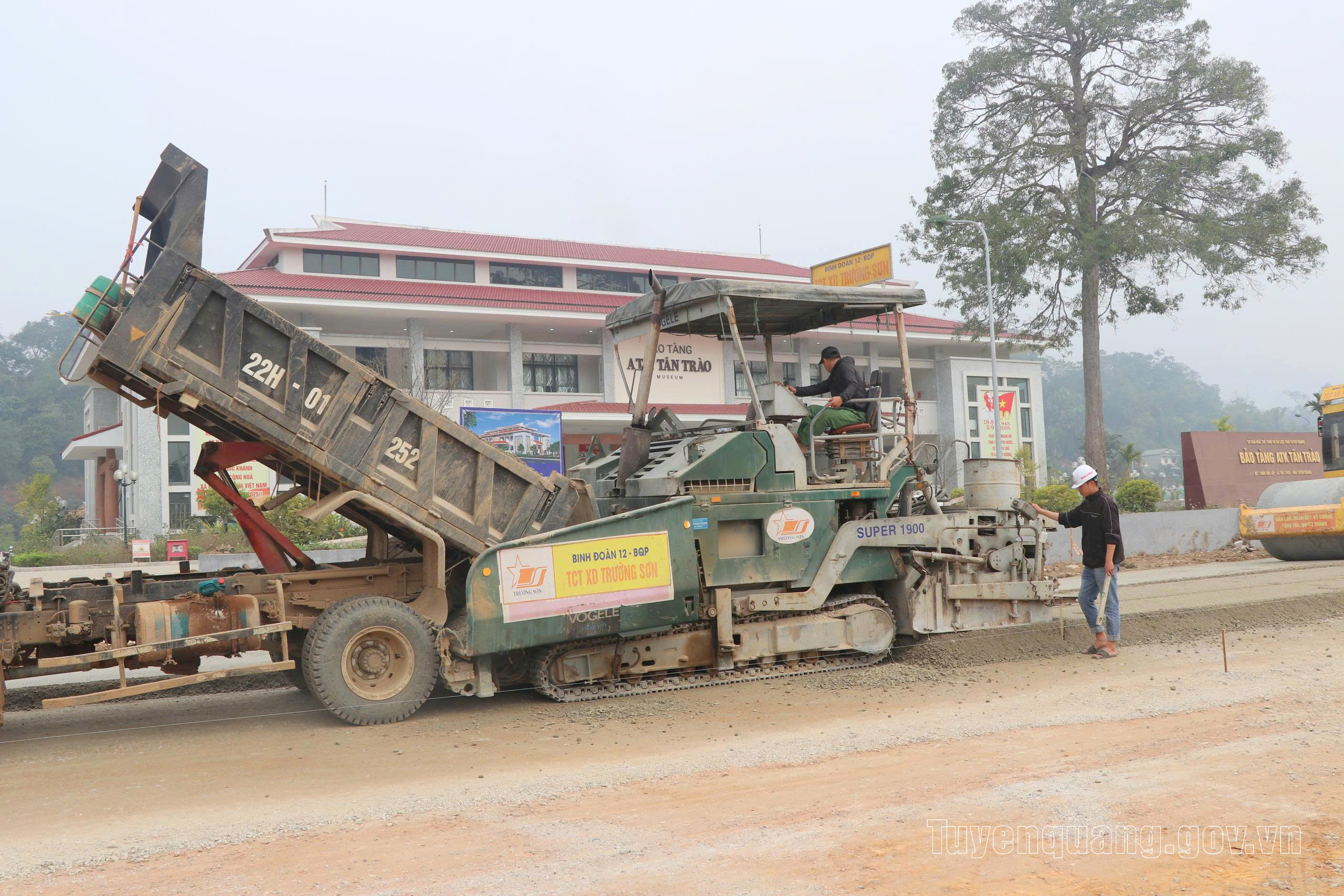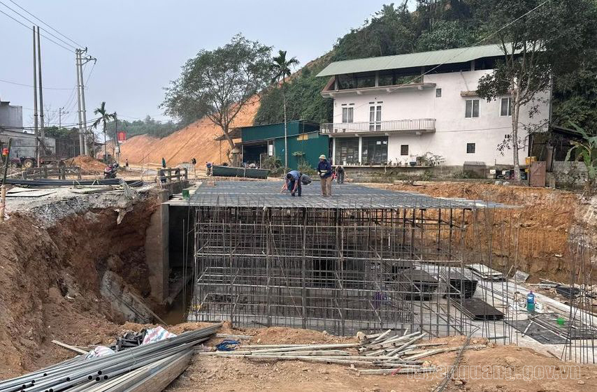 Những ngày giáp Tết, trên suốt tuyến từ khu vực Lán Nà Nưa đến đầu cầu Trung Yên, thôn Quan Hạ, xã Tân Trào, không khí thi công vẫn được duy trì liên tục. Các mũi thi công nền đường, cầu, cống thoát nước hoạt động nhịp nhàng. Trên công trường, cờ Tổ quốc, băng rôn chào xuân được treo xen giữa máy móc, thiết bị, tạo nên hình ảnh rộn ràng, khí thế trong những ngày đầu xuân.