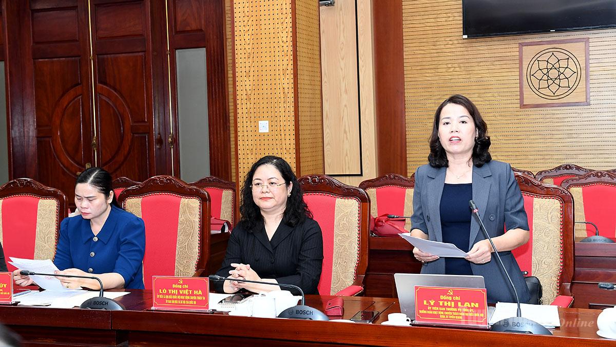 Đồng chí Lý Thị Lan, Ủy viên Ban Thường vụ Tỉnh ủy, Trưởng Đoàn ĐBQH hoạt động chuyên trách khoá XV tỉnh báo cáo công tác chuẩn bị tham dự Kỳ họp thứ Nhất, Quốc hội khóa XVI.