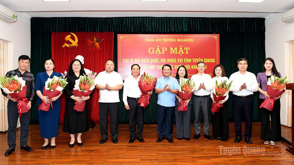 Đồng chí Ngô Đông Hải, Ủy viên Ban Chấp hành Trung ương Đảng, Phó Trưởng Ban Tuyên giáo và Dân vận Trung ương cùng các vị đại biểu Quốc hội khóa XVI tỉnh Tuyên Quang dự buổi gặp mặt.