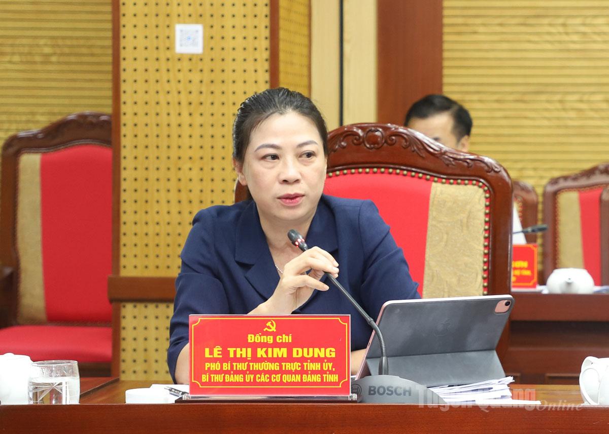 Phó Bí thư Thường trực Tỉnh ủy Lê Thị Kim Dung thảo luận tại phiên họp.