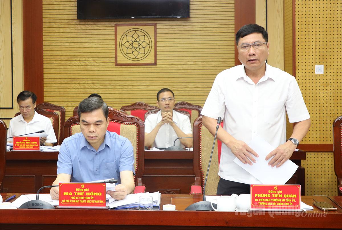 Trưởng Ban Nội chính Tỉnh ủy Phùng Tiến Quân trình bày Tờ trình của Ban Nội chính Tỉnh ủy tại phiên họp.