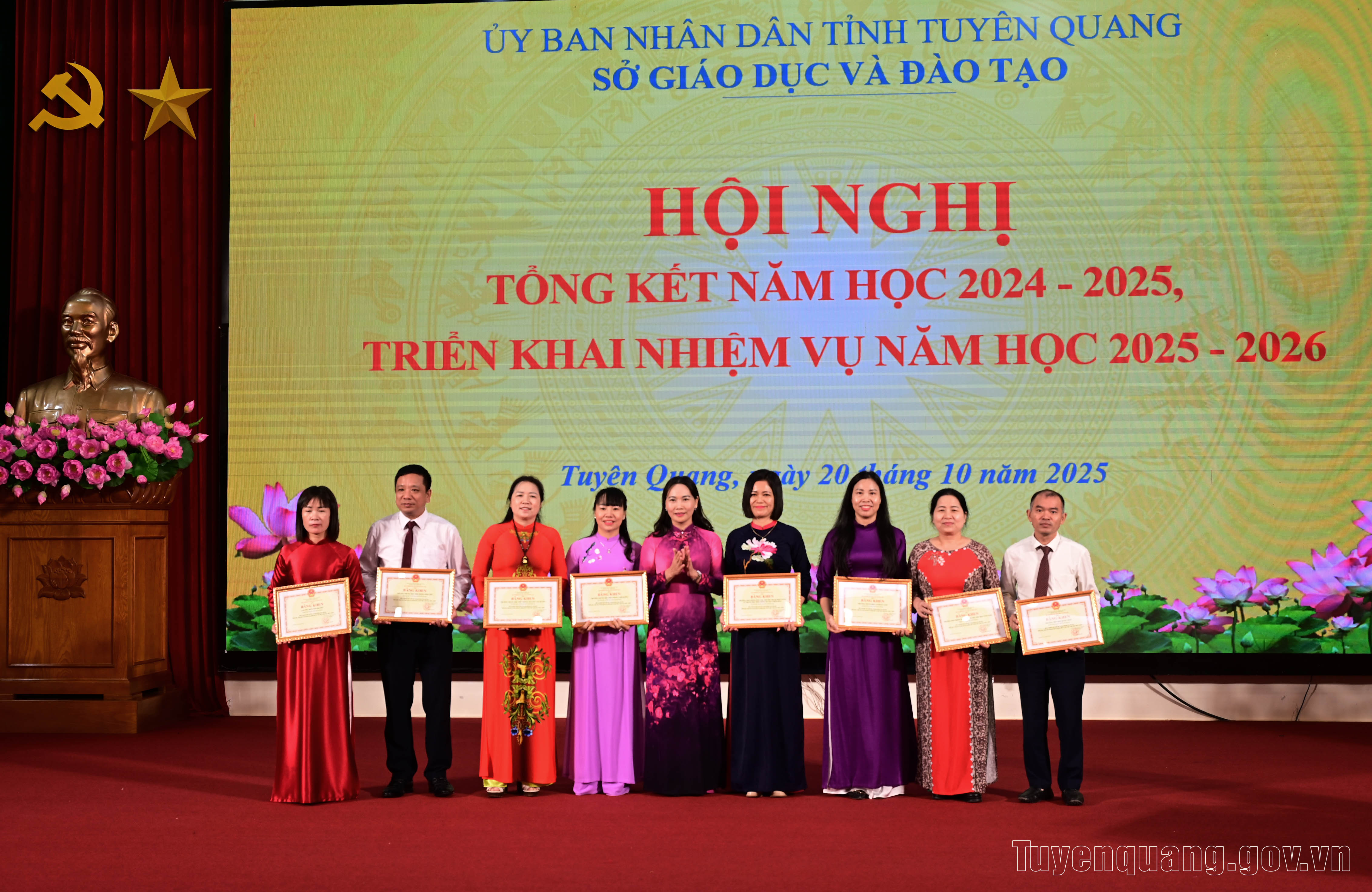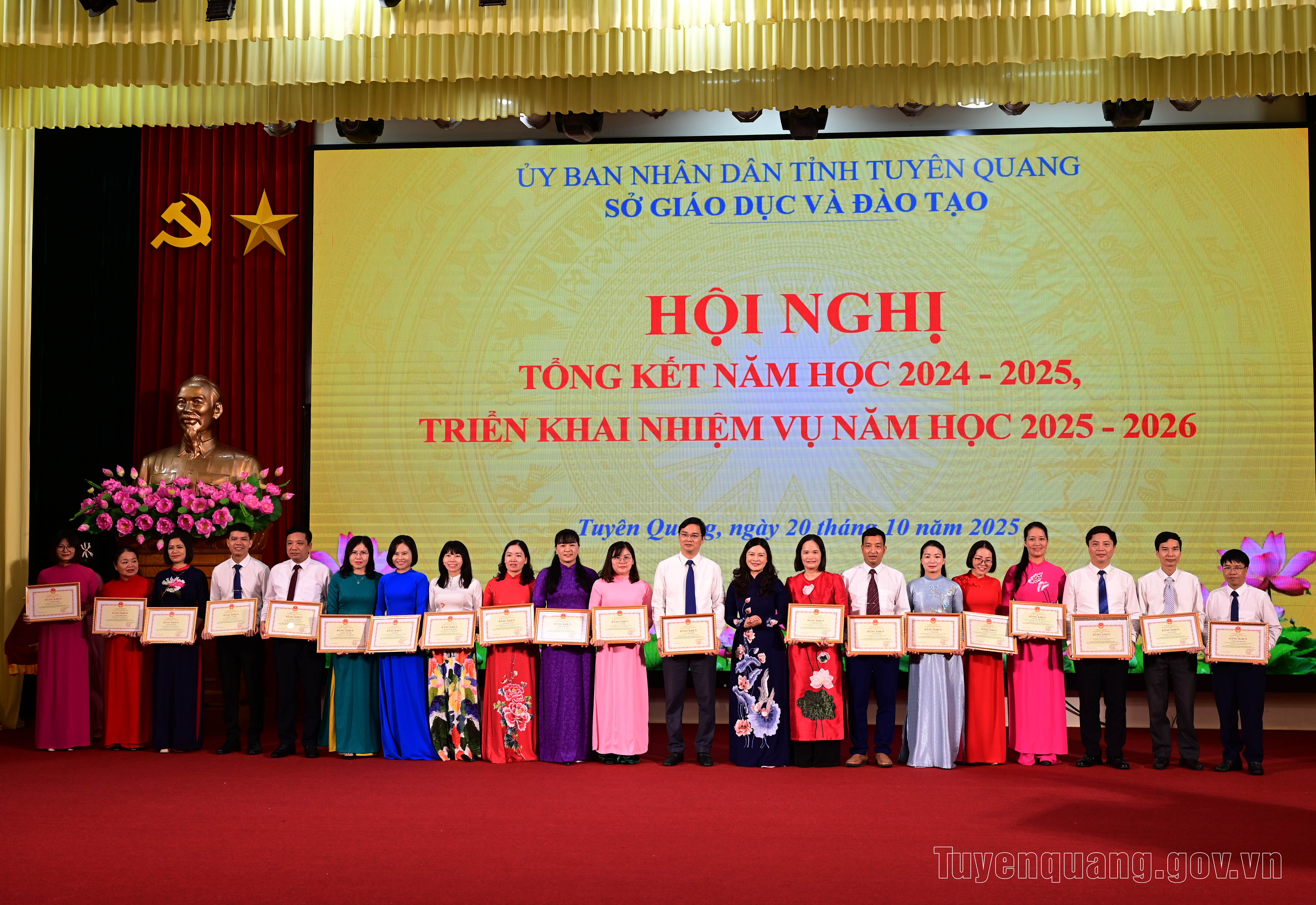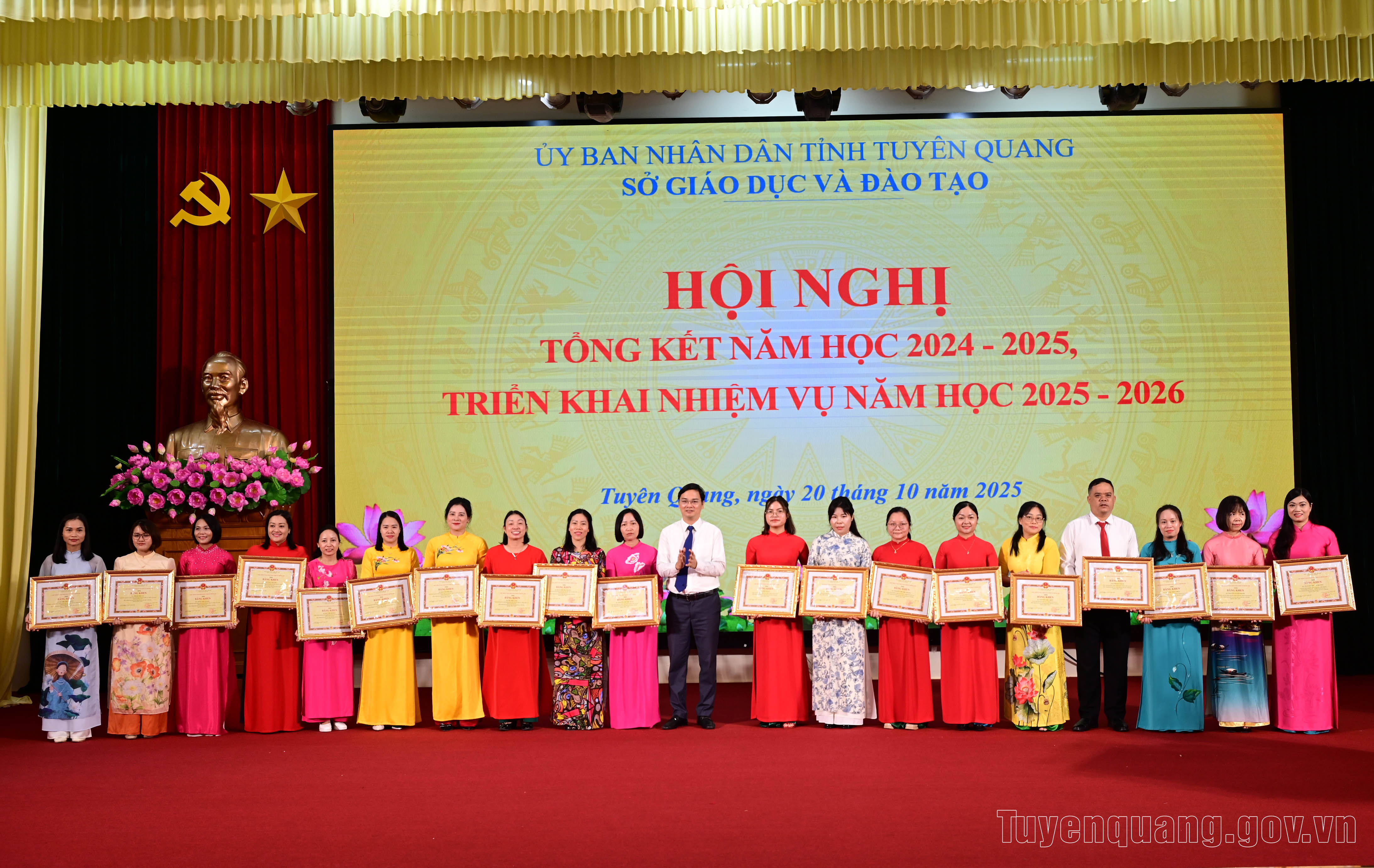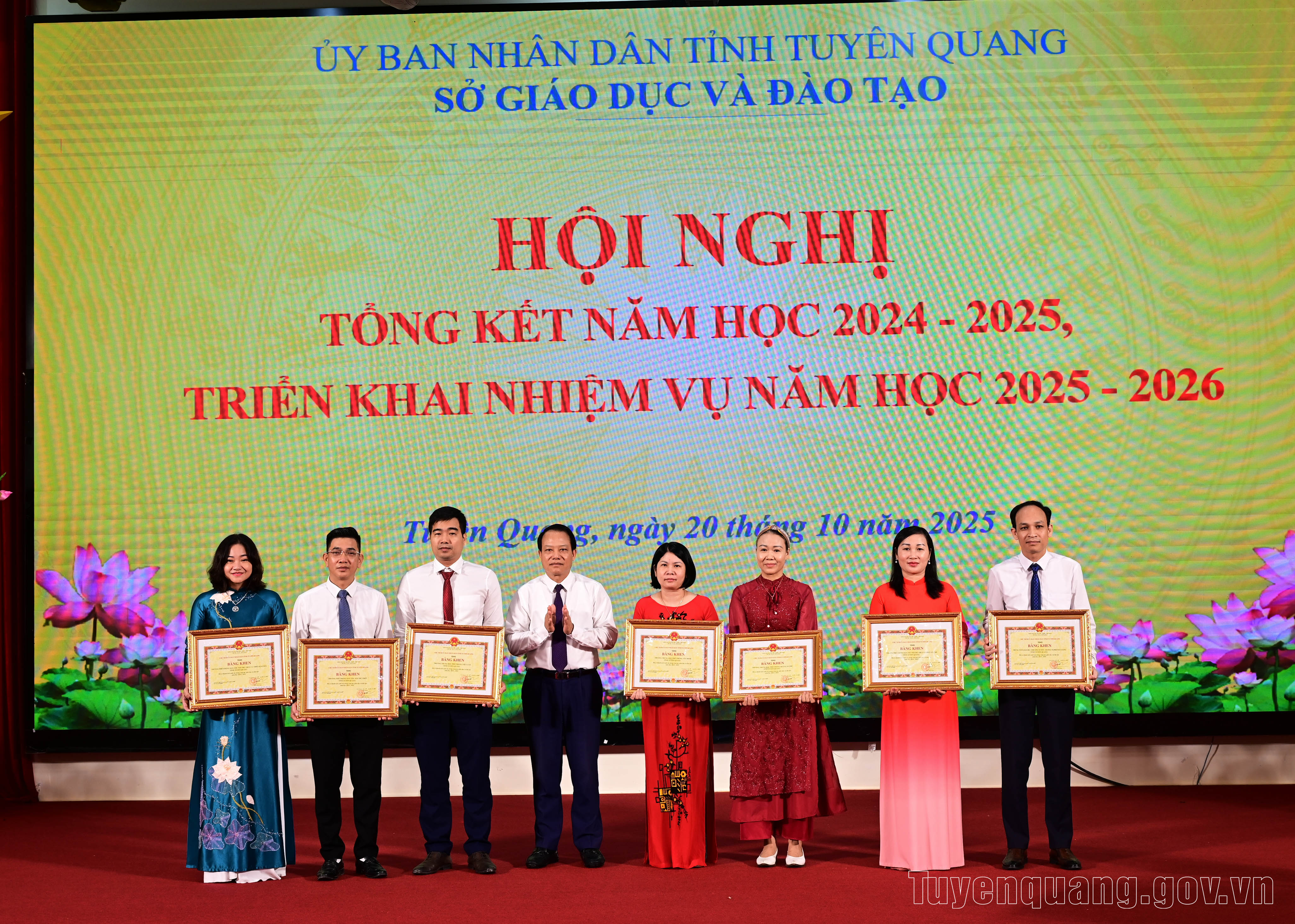 Nhân dịp này, 8 tập thể và 21 cá nhân được nhận Bằng khen của Bộ Giáo dục và Đào tạo; 4 tập thể nhận Cờ thi đua của UBND tỉnh; 7 tập thể được công nhận “Tập thể lao động xuất sắc”; 7 tập thể và 60 cá nhân được nhận Bằng khen của Chủ tịch UBND tỉnh vì có thành tích xuất sắc trong năm học 2024-2025.