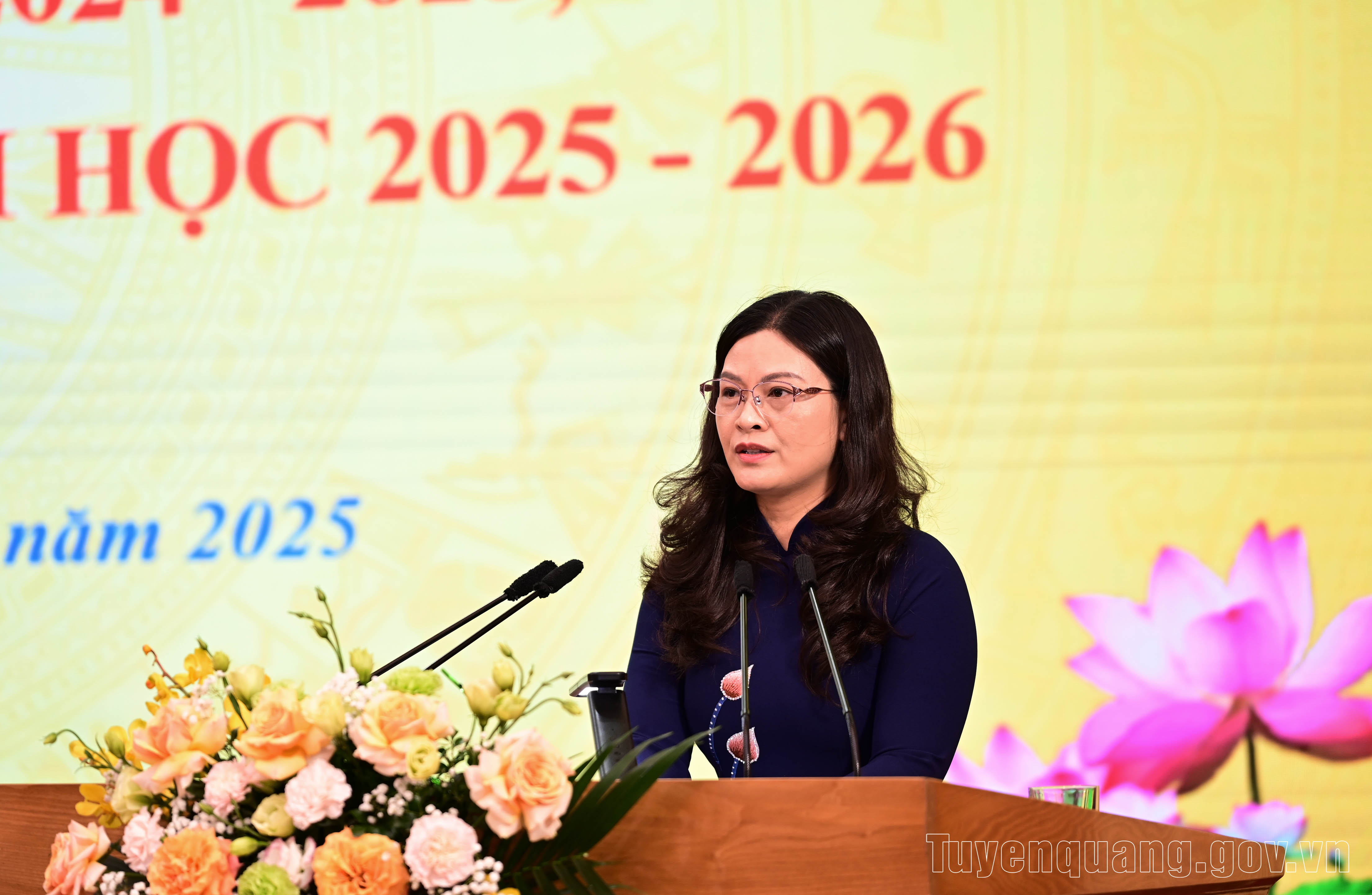 Đồng chí tin tưởng rằng, với tinh thần đoàn kết, sáng tạo và đổi mới, ngành Giáo dục và Đào tạo Tuyên Quang sẽ tiếp tục phát huy truyền thống hiếu học, đổi mới tư duy quản lý, nâng cao chất lượng giáo dục toàn diện; xây dựng đội ngũ nhà giáo và cán bộ quản lý vững vàng về chuyên môn, gương mẫu về đạo đức, tận tụy với nghề. Qua đó, góp phần thực hiện thắng lợi các mục tiêu phát triển giáo dục giai đoạn 2025–2030, đưa Tuyên Quang trở thành địa phương có chất lượng giáo dục nằm trong nhóm phát triển mạnh của cả nước, đóng góp tích cực vào sự phát triển bền vững của tỉnh trong thời kỳ mới.