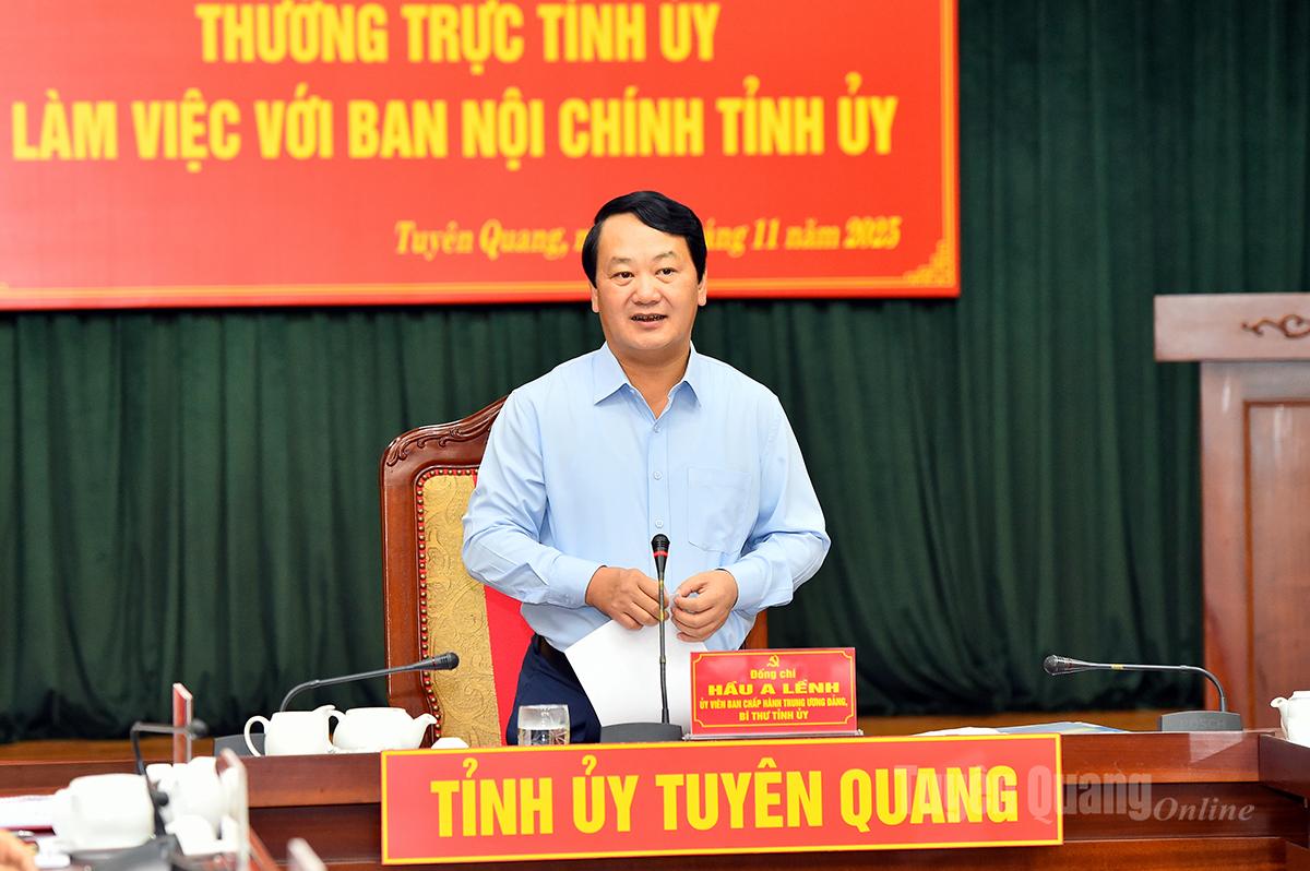 Kết luận buổi làm việc, Bí thư Tỉnh ủy Hầu A Lềnh ghi nhận, biểu dương tinh thần đoàn kết, nỗ lực của tập thể lãnh đạo, cán bộ, công chức Ban Nội chính Tỉnh ủy trong giai đoạn đầu sau hợp nhất, đã chủ động, sáng tạo, đảm bảo hoạt động cơ quan thông suốt, ổn định; đóng góp quan trọng vào công tác lãnh đạo, chỉ đạo của Tỉnh ủy trong giữ vững an ninh chính trị, trật tự an toàn xã hội, phòng ngừa, ngăn chặn tham nhũng, tiêu cực.