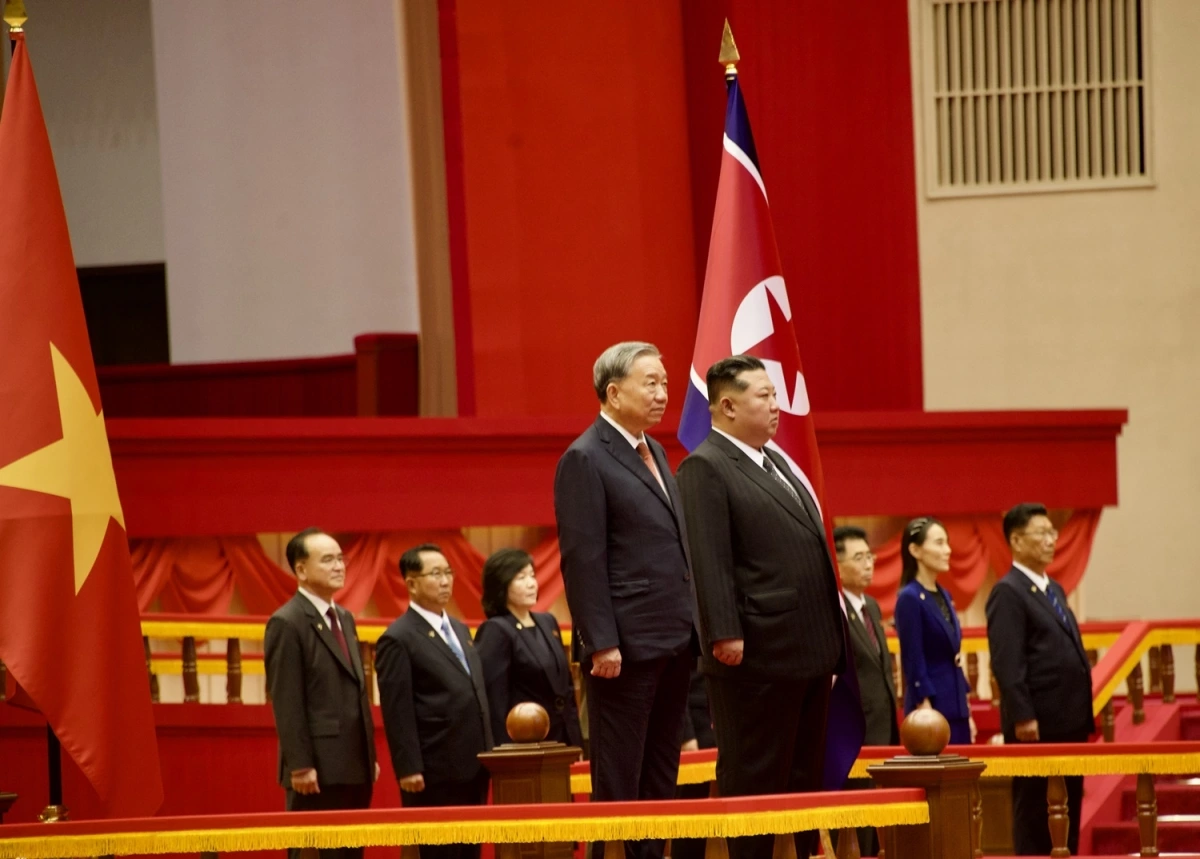 Tổng Bí thư Đảng Lao động Triều Tiên, Chủ tịch Quốc vụ nước CHDCND Triều Tiên Kim Jong Un chủ trì lễ đón trọng thể Tổng Bí thư Tô Lâm.