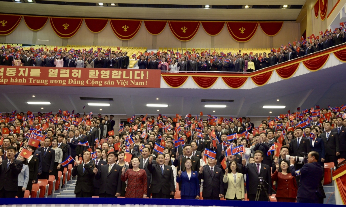 Tổng Bí thư Đảng Lao động Triều Tiên, Chủ tịch Quốc vụ nước CHDCND Triều Tiên Kim Jong Un bắt tay các thành viên Đoàn đại biểu cấp cao nước ta sang thăm cấp Nhà nước tới Triều Tiên.