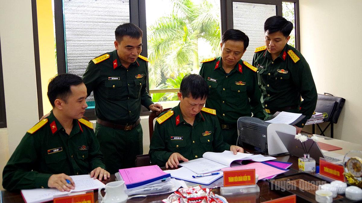 Đoàn công tác đã tiến hành kiểm tra hệ thống văn bản, hồ sơ, sổ sách liên quan đến công tác cán bộ. Đồng thời trao đổi, nắm tình hình và làm rõ một số nội dung về công tác quản lý, sử dụng cán bộ, chính sách cán bộ, nhất là đội ngũ cán bộ hiện nay được điều động về cơ sở theo chủ trương của Quân ủy Trung ương, Bộ Quốc phòng từ khi thành lập Ban CHQS xã, phường theo vận hành chính quyền địa phường 2 cấp.