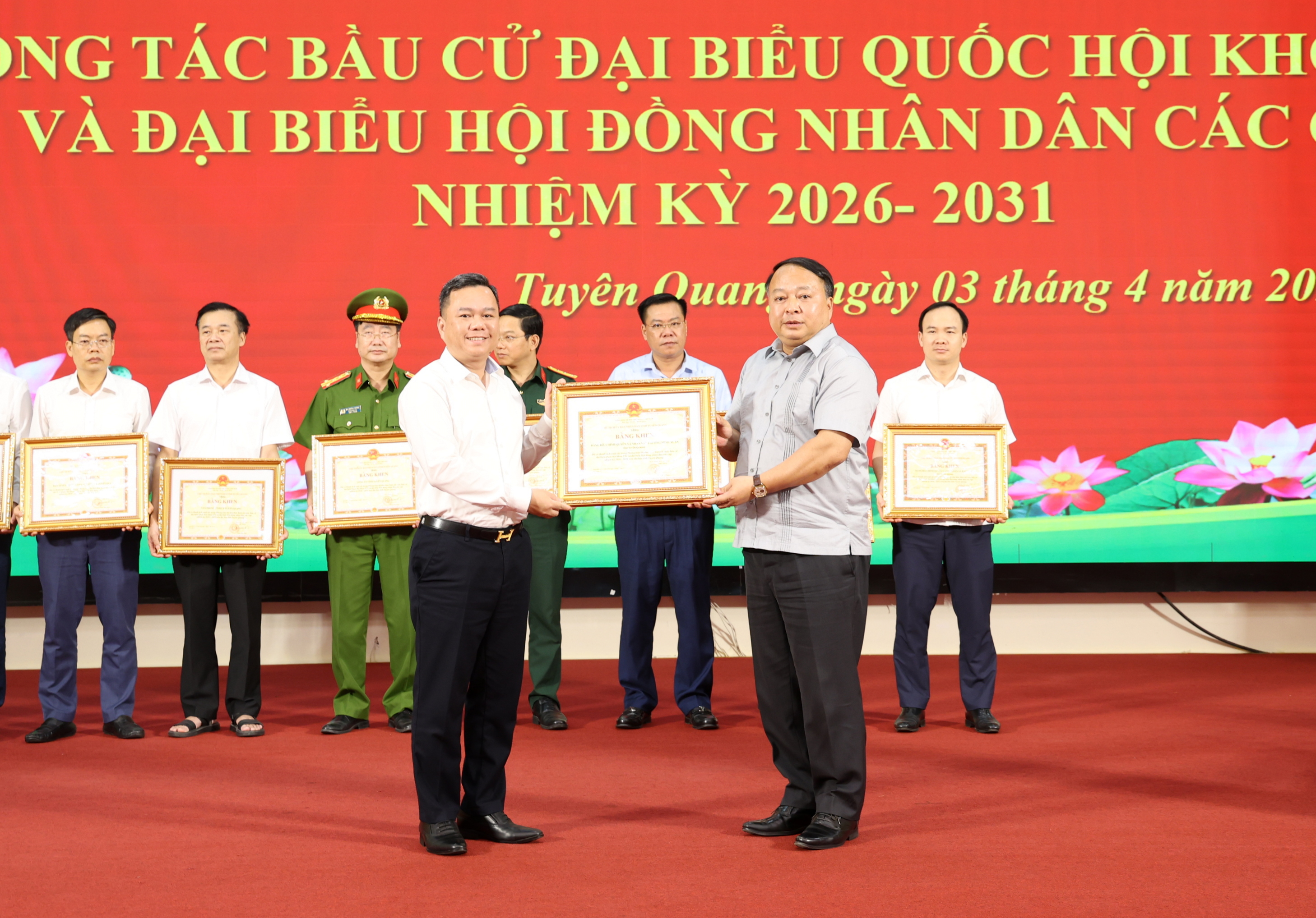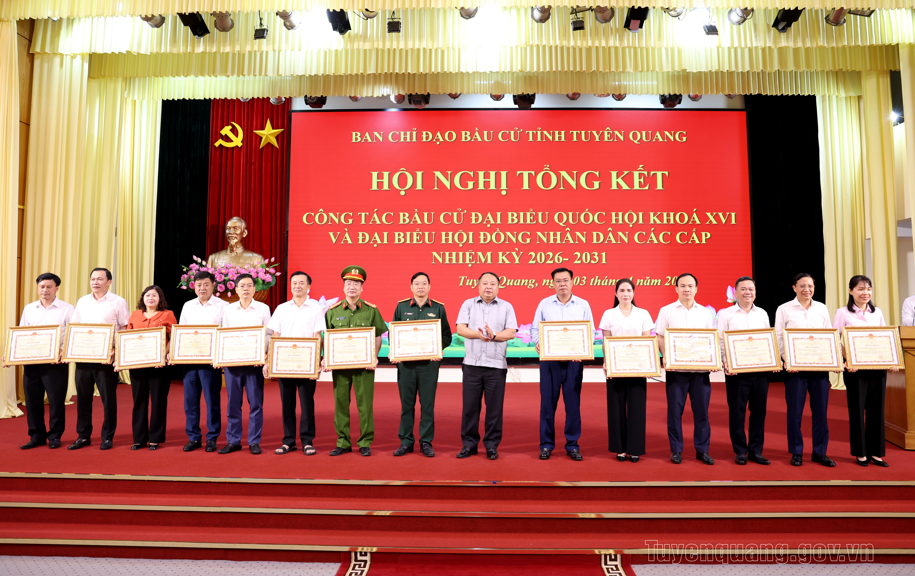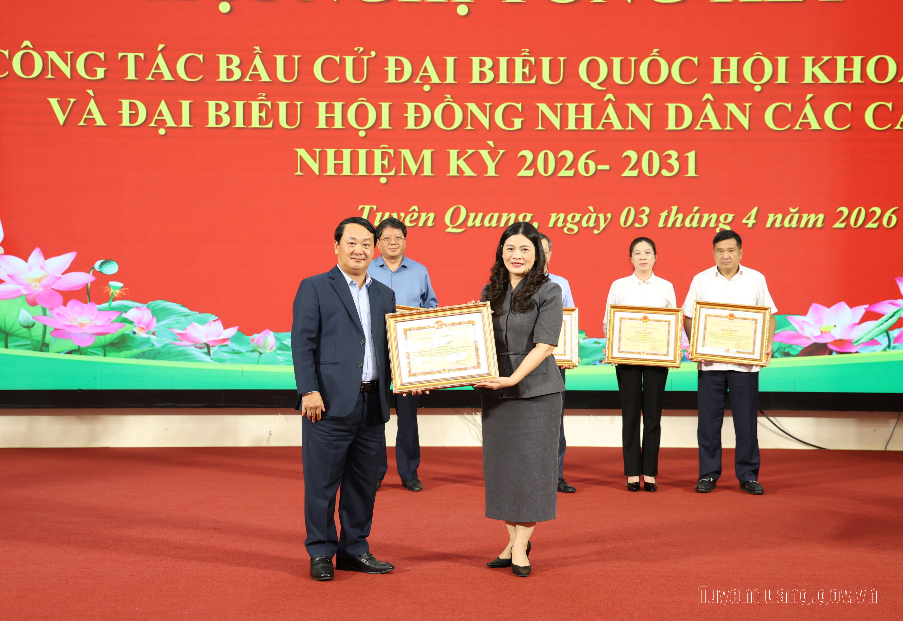 Nhân dịp này, Chủ tịch UBND tỉnh đã tặng Bằng khen cho 121 tập thể và 37 cá nhân có thành tích xuất sắc trong Phong trào thi đua thực hiện tốt cuộc bầu cử đại biểu Quốc hội khóa XVI và đại biểu HĐND các cấp nhiệm kỳ 2026-2031 trên địa bàn tỉnh Tuyên Quang.