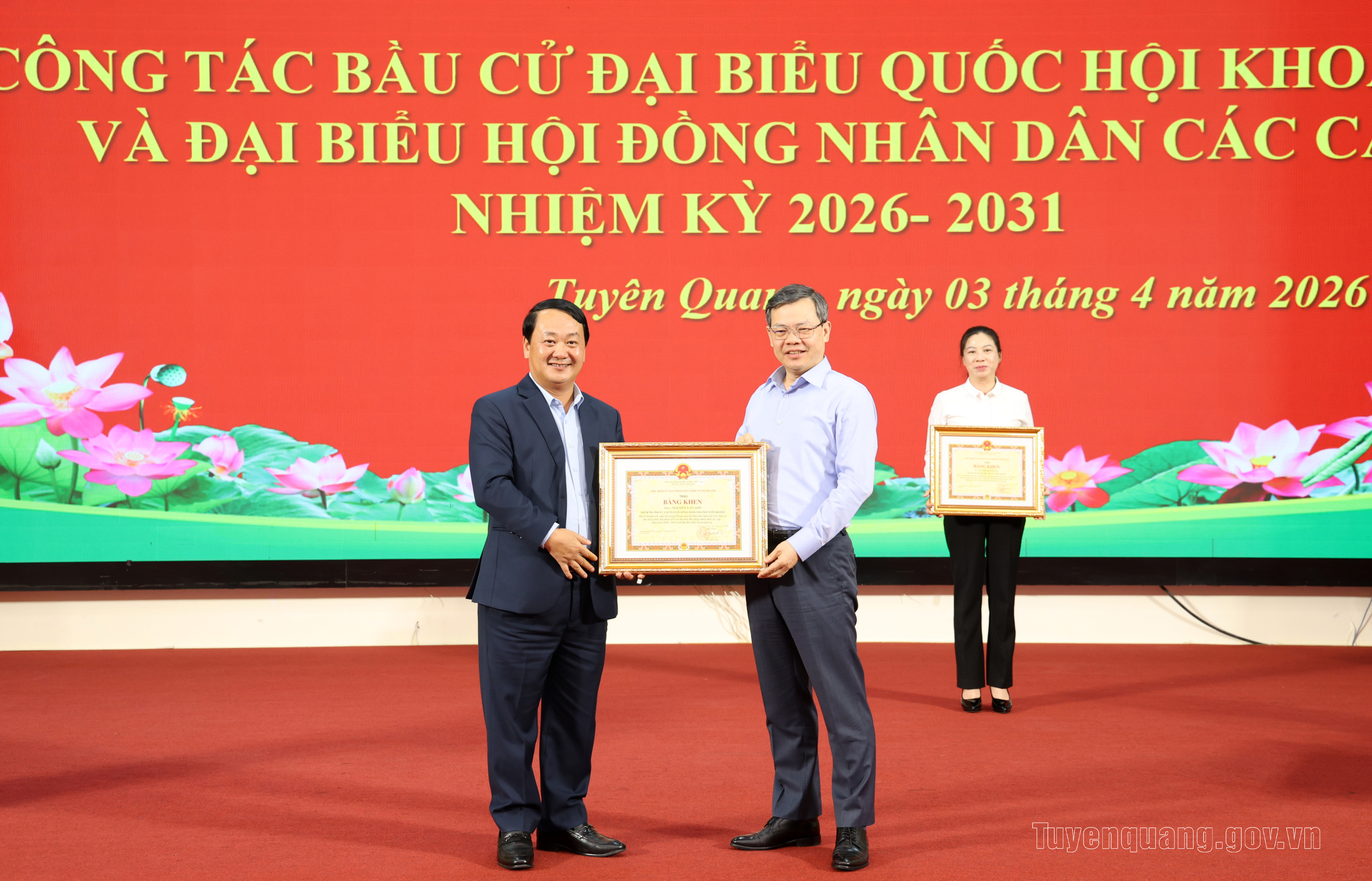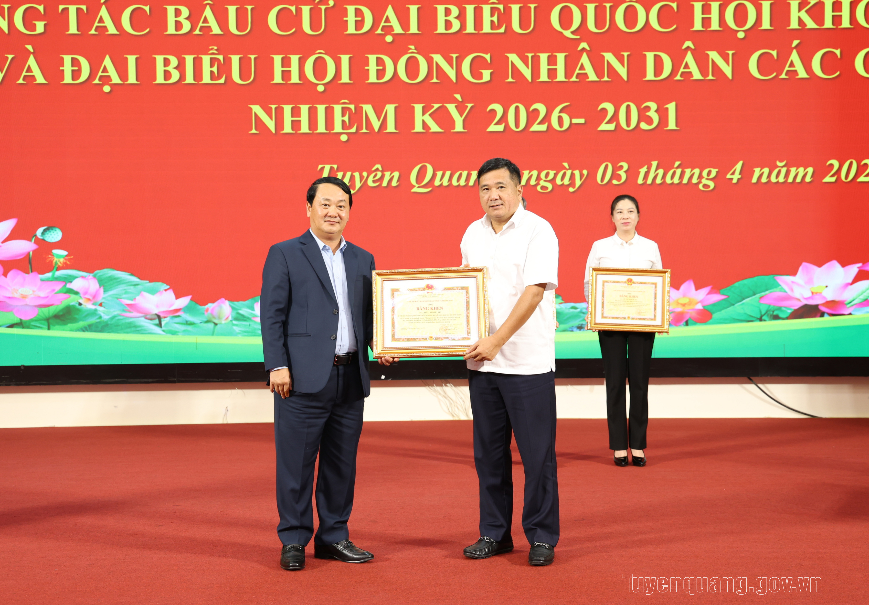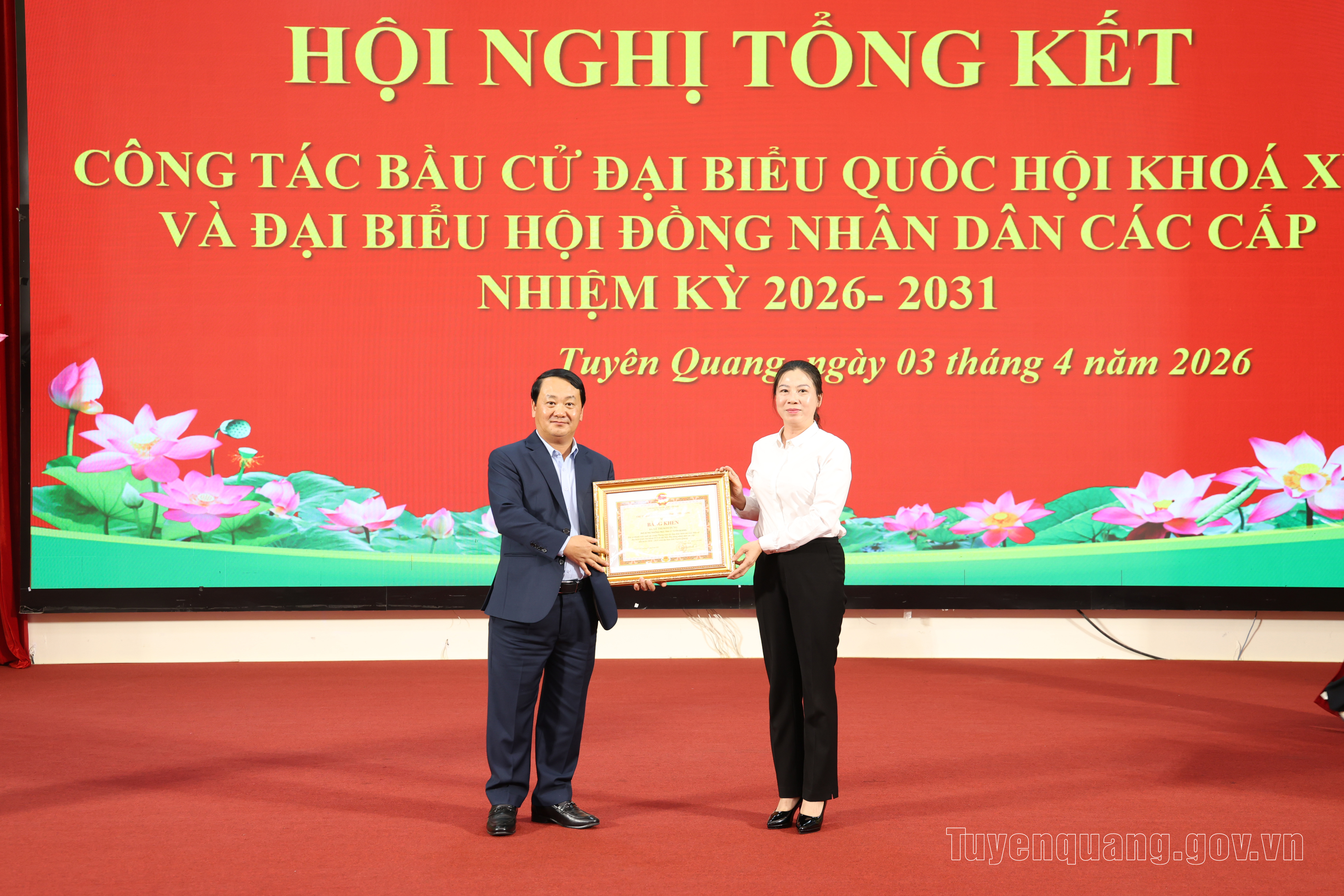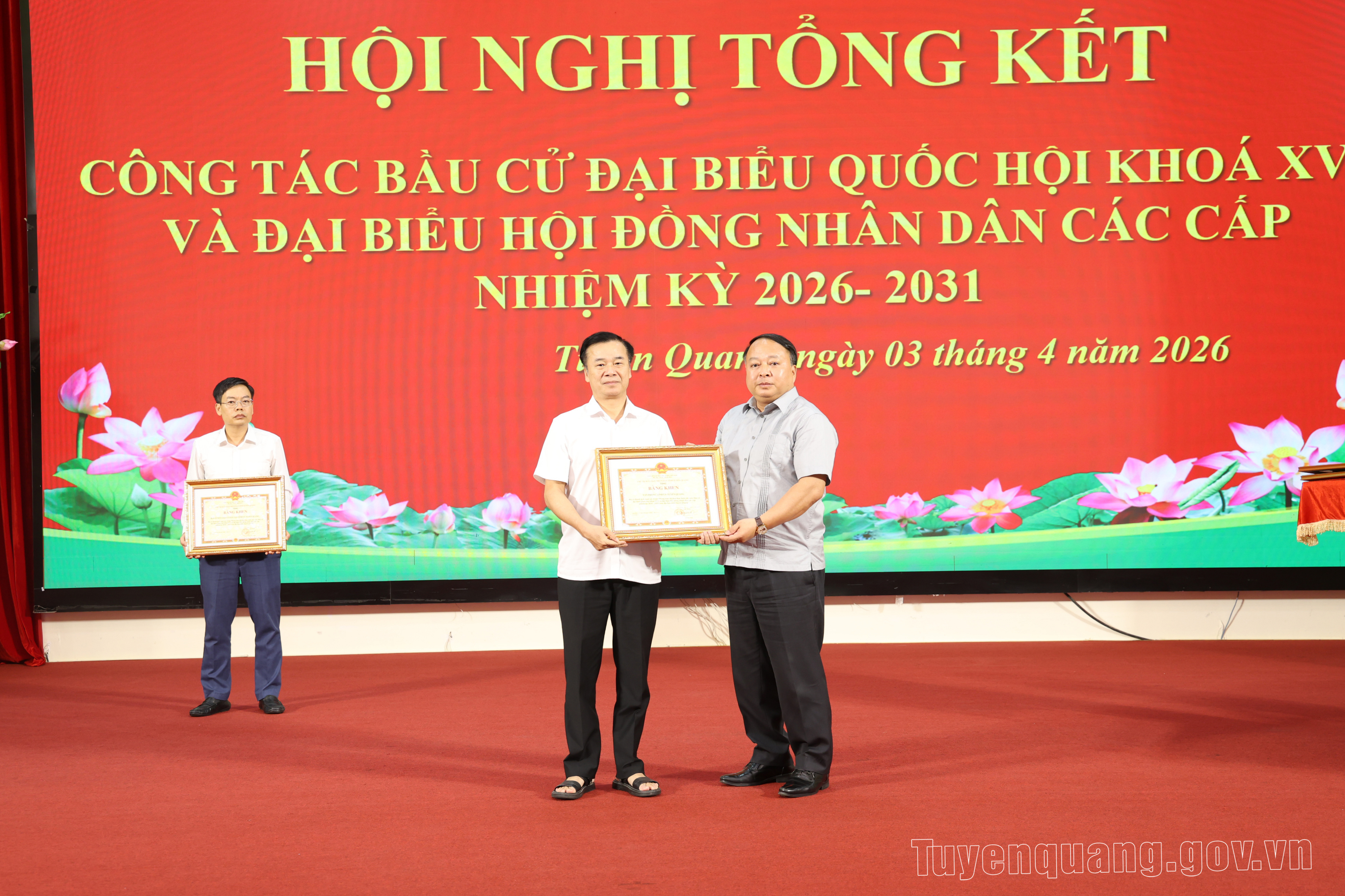 Nhân dịp này, Chủ tịch UBND tỉnh đã tặng Bằng khen cho 121 tập thể và 37 cá nhân có thành tích xuất sắc trong Phong trào thi đua thực hiện tốt cuộc bầu cử đại biểu Quốc hội khóa XVI và đại biểu HĐND các cấp nhiệm kỳ 2026-2031 trên địa bàn tỉnh Tuyên Quang.