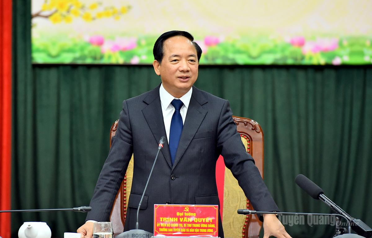 Đồng chí Trịnh Văn Quyết, Trưởng Ban Tuyên giáo và Dân vận Trung ương phát biểu chúc Tết Đảng bộ, chính quyền và Nhân dân các dân tộc tỉnh Tuyên Quang.