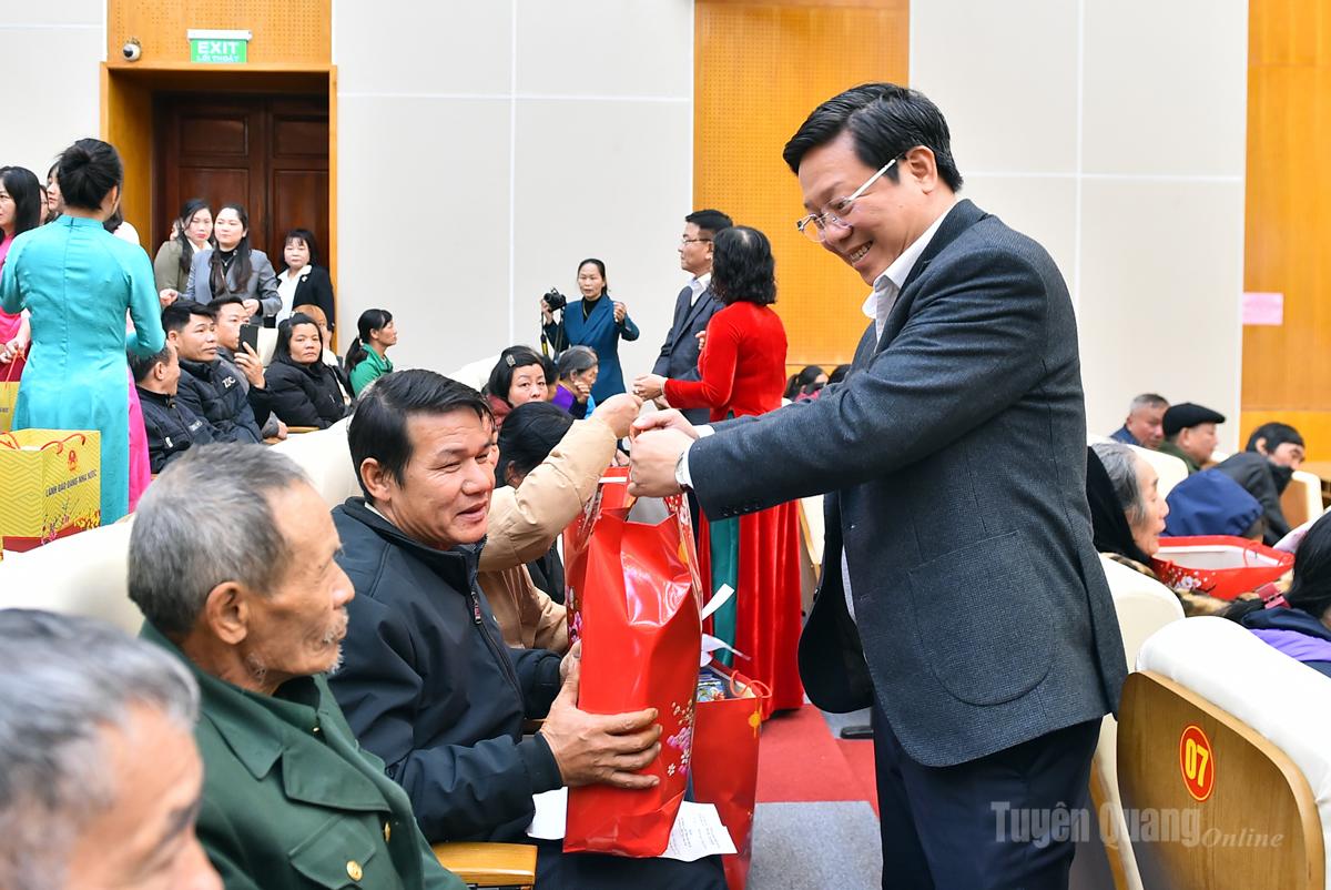 Đồng chí Trưởng Ban Tuyên giáo và Dân vận Trung ương Trịnh Văn Quyết, Phó Thủ tướng Chính phủ Lê Thành Long cùng các đồng chí lãnh đạo đã trao quà của Đảng, Nhà nước cho hộ nghèo, hộ có hoàn cảnh khó khăn thuộc tỉnh Tuyên Quang, tổng cộng 600 suất quà.