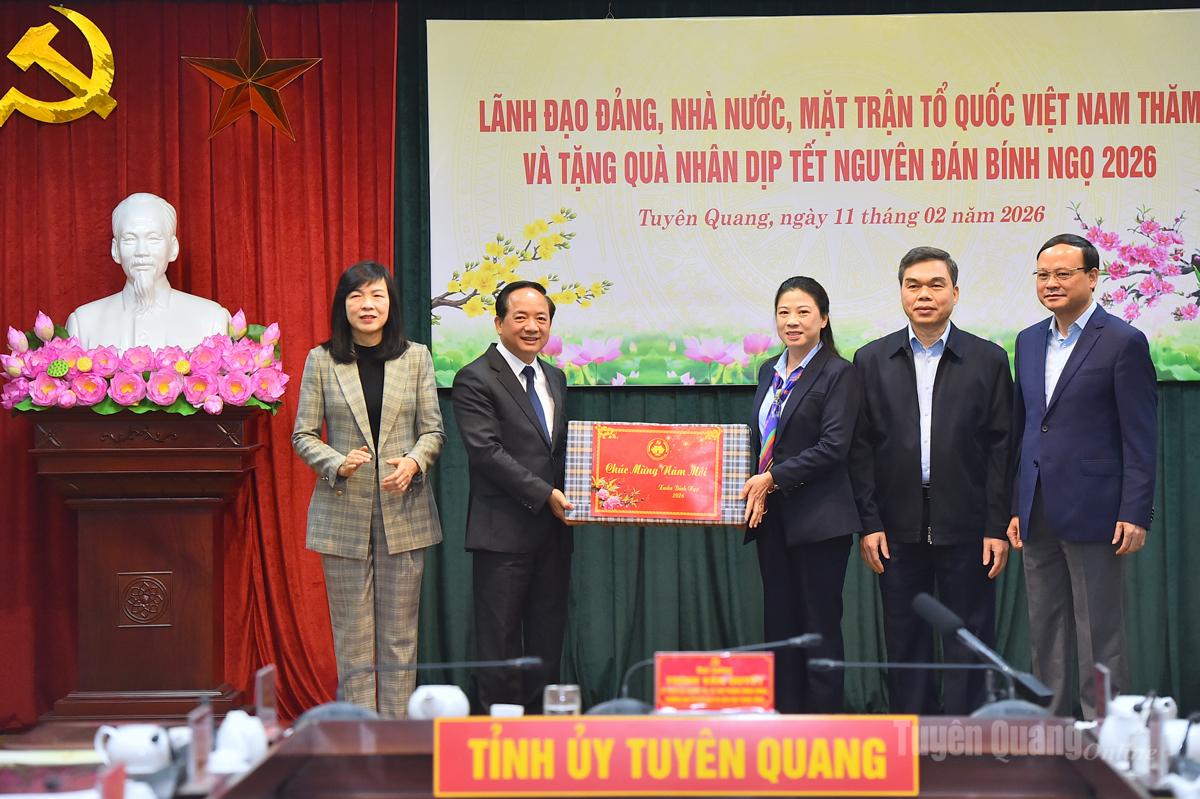 Thay mặt Đảng bộ, chính quyền và Nhân dân các dân tộc tỉnh Tuyên Quang, Phó Bí thư Thường trực Tỉnh ủy Lê Thị Kim Dung trân trọng cảm ơn đồng chí Trịnh Văn Quyết cùng đoàn công tác của Trung ương đã dành thời gian về thăm, chúc Tết và động viên tỉnh nhân dịp Xuân Bính Ngọ 2026.