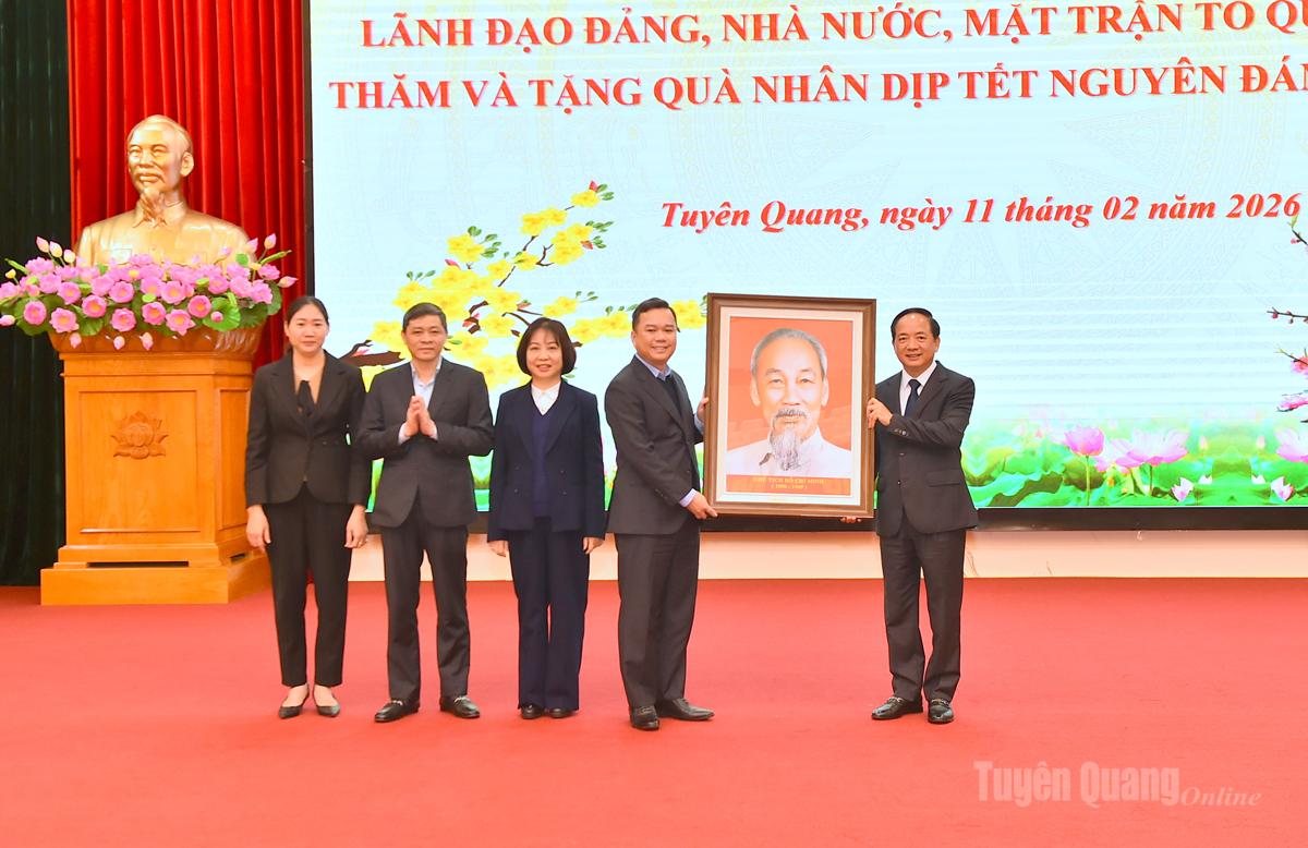 Đồng chí Trịnh Văn Quyết, Trưởng Ban Tuyên giáo và Dân vận Trung ương tặng bức ảnh chân dung Chủ tịch Hồ Chí Minh cho tỉnh Tuyên Quang.