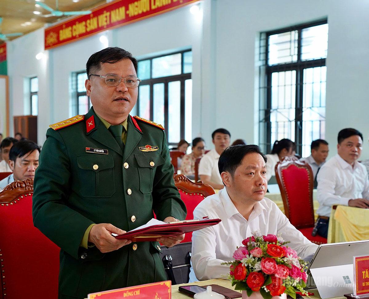 Ông Lý Văn Quyền, Phó Chỉ huy trưởng Ban Chỉ huy Quân sự xã Tân Trịnh trình bày chương trình hành động.