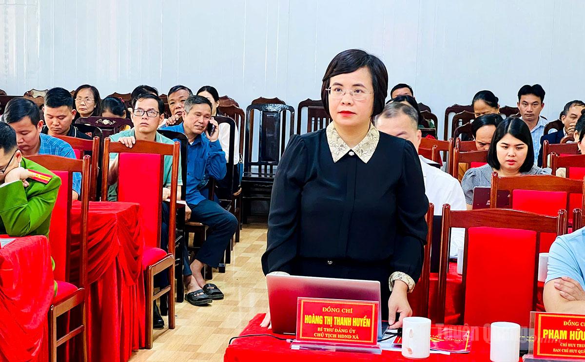Bí thư Đảng uỷ xã Việt Lâm Hoàng Thị Thanh Huyền, đại diện cử tri xã nêu ý kiến tại buổi tiếp xúc.