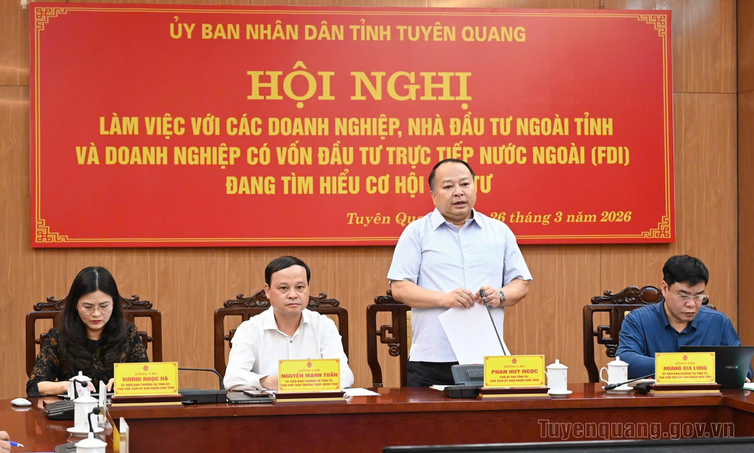 Phát biểu khai mạc hội nghị, đồng chí Chủ tịch UBND tỉnh Phan Huy Ngọc nhấn mạnh: Để hoàn thành mục tiêu tăng trưởng hai con số; phấn đấu đến năm 2030, thu ngân sách đạt 12.000 tỷ đồng; thu nhập bình quân đầu người đạt 95 triệu đồng/người/năm…, tỉnh Tuyên Quang luôn xác định kinh tế tư nhân là động lực then chốt thúc đẩy phát triển kinh tế - xã hội của tỉnh. Tỉnh cam kết tiếp tục cải thiện môi trường đầu tư, kinh doanh theo hướng minh bạch, thuận lợi; lấy sự hài lòng của người dân, doanh nghiệp làm thước đo hiệu quả của bộ máy chính quyền. Đồng thời đẩy mạnh cải cách hành chính, hoàn thiện kết cấu hạ tầng và ban hành các chính sách đặc thù để trải thảm đỏ đón nhà đầu tư.