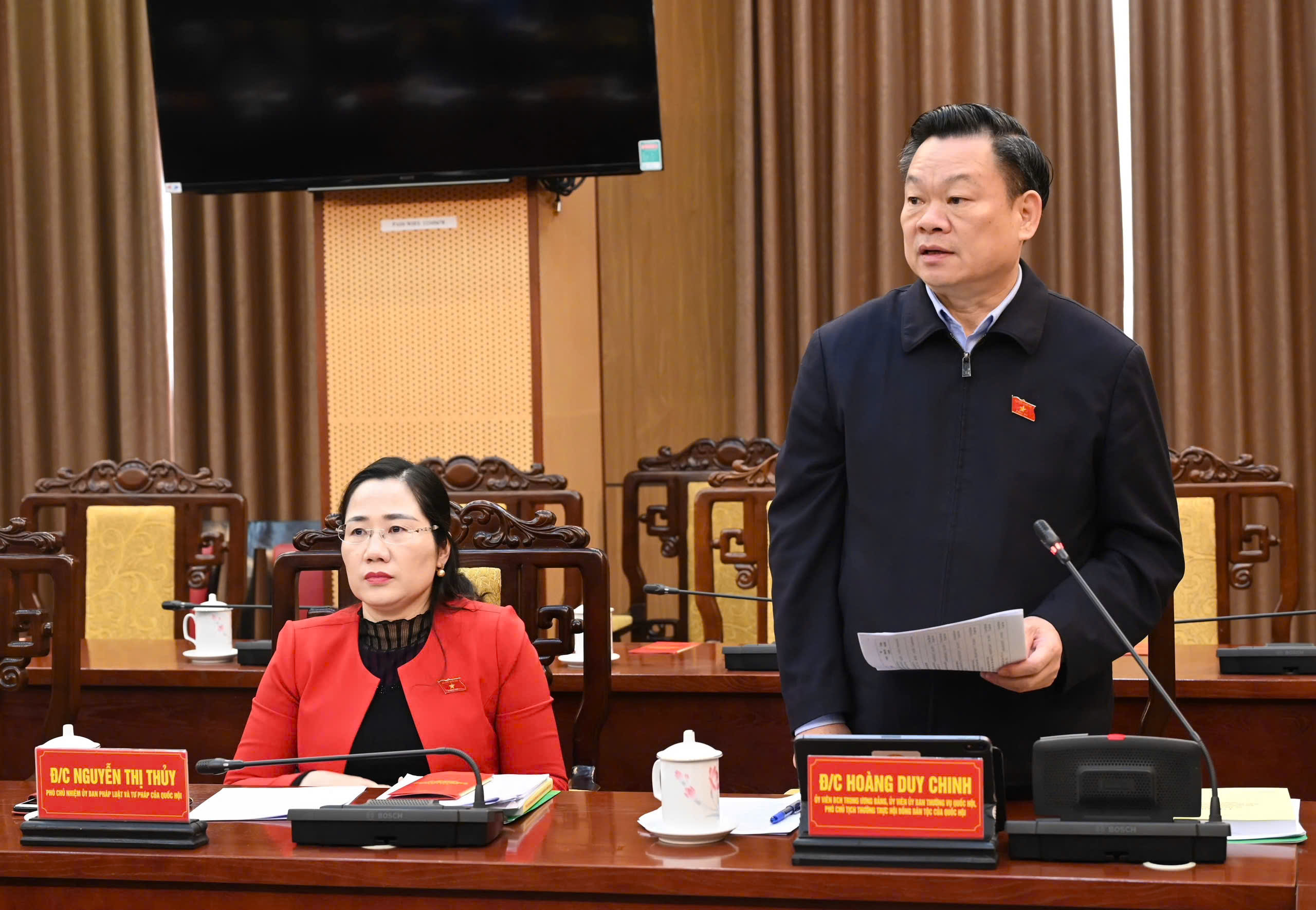 Tham gia Đoàn có các đồng chí: Hoàng Duy Chinh, Ủy viên BCH Trung ương Đảng, Phó Chủ tịch Thường trực Hội đồng Dân tộc của Quốc hội; Nguyễn Thị Thủy, Phó Chủ nhiệm Ủy ban Pháp luật và Tư pháp của Quốc hội; Nguyễn Đại Thắng, Phó Chủ nhiệm Ủy ban Công tác đại biểu của Quốc hội; đại diện Bộ Văn hóa, Thể thao và Du lịch, Bộ Công an, Ủy ban Trung ương Mặt trận Tổ quốc Việt Nam…