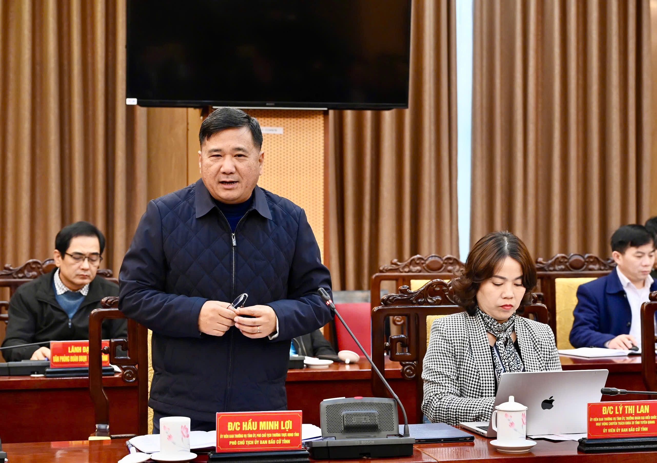 Đồng chí Hầu Minh Lợi, Ủy viên BTV Tỉnh ủy, Phó Chủ tịch Thường trực HĐND tỉnh, Phó Chủ tịch Ủy ban bầu cử tỉnh phát biểu.