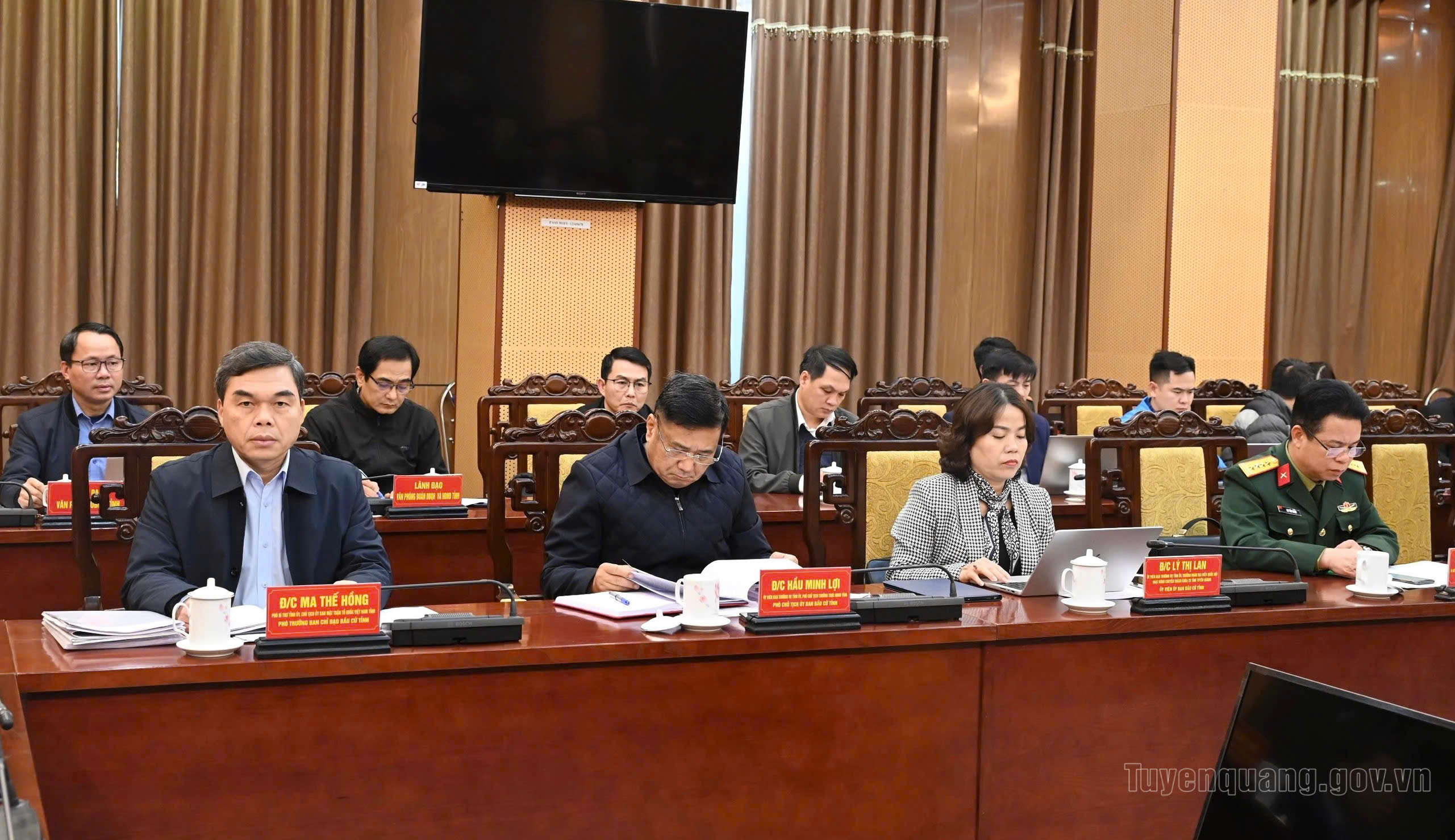 Đón tiếp và làm việc với Đoàn có các đồng chí: Phan Huy Ngọc, Phó Bí thư Tỉnh ủy, Chủ tịch UBND tỉnh, Chủ tịch Ủy ban bầu cử tỉnh; Ma Thế Hồng, Phó Bí thư Tỉnh ủy, Chủ tịch Ủy ban MTTQ tỉnh, Phó trưởng Ban Chỉ đạo bầu cử tỉnh; Hầu Minh Lợi, Ủy viên BTV Tỉnh ủy, Phó Chủ tịch Thường trực HĐND tỉnh, Phó Chủ tịch Ủy ban bầu cử tỉnh; Lý Thị Lan, Ủy viên BTV Tỉnh ủy, Trưởng đoàn ĐBQH tỉnh; lãnh đạo các sở, ngành thành viên Ủy ban bầu cử tỉnh…