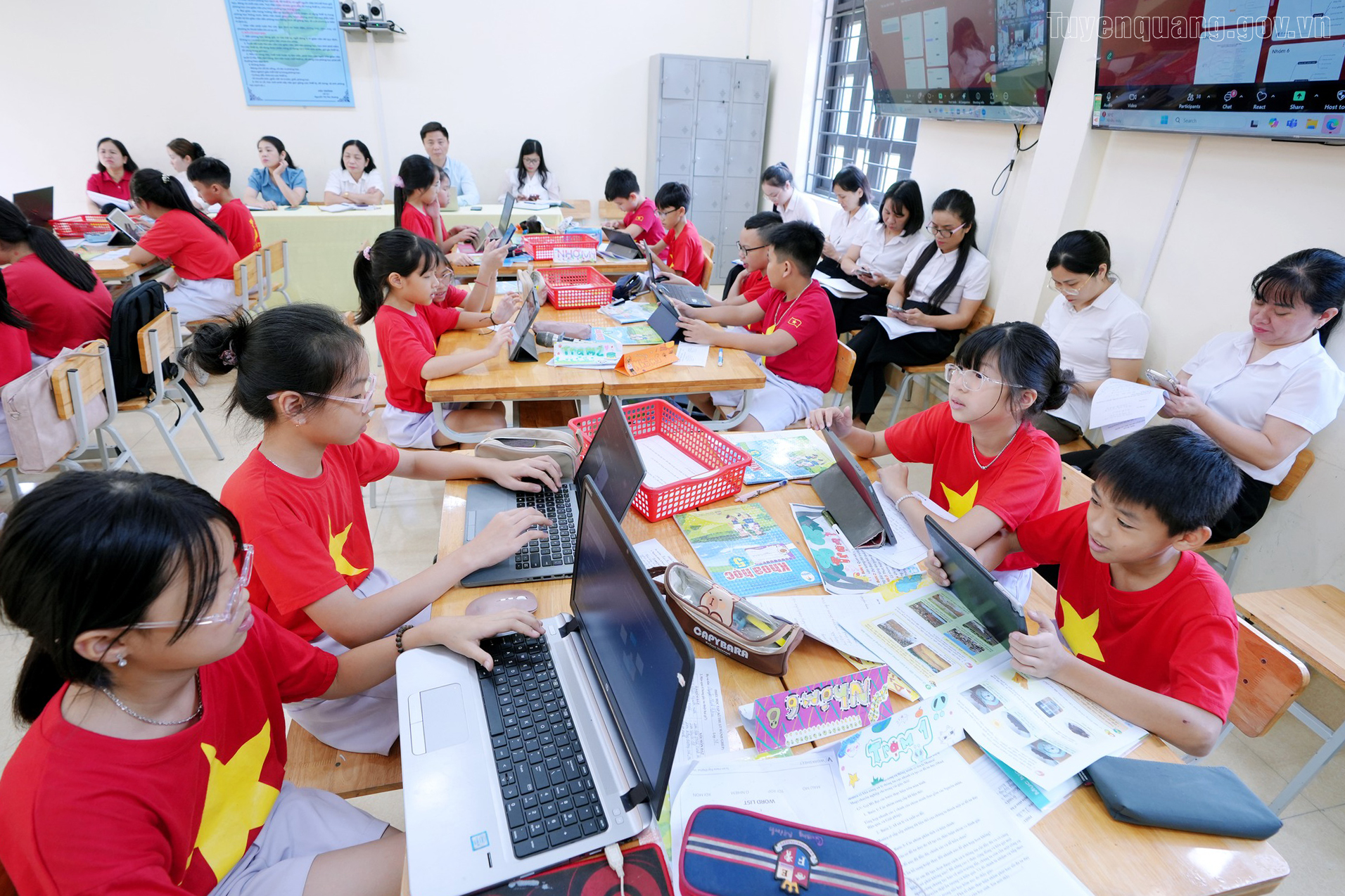 Song hành với đổi mới quản lý là vai trò tiên phong của Tuyên Quang trong chuyển đổi số giáo dục. Đến nay, 100% cơ sở giáo dục trên địa bàn đã được kết nối Internet cáp quang, triển khai đồng bộ các phần mềm quản lý, liên thông dữ liệu với Cơ sở dữ liệu ngành của Bộ Giáo dục và Đào tạo. Việc ứng dụng công nghệ thông tin không chỉ phục vụ quản lý chuyên môn mà còn lan tỏa mạnh mẽ sang lĩnh vực hành chính công. Toàn bộ TTHC thuộc thẩm quyền của Sở Giáo dục và Đào tạo đều được cung cấp trực tuyến trên Cổng dịch vụ công Quốc gia, trong đó trên 90% thủ tục được giải quyết hoàn toàn trực tuyến. Điều này góp phần giảm thiểu giấy tờ, rút ngắn thời gian xử lý, nâng cao mức độ hài lòng của người dân, nhà trường, hướng tới xây dựng nền hành chính phục vụ, hiện đại và minh bạch.