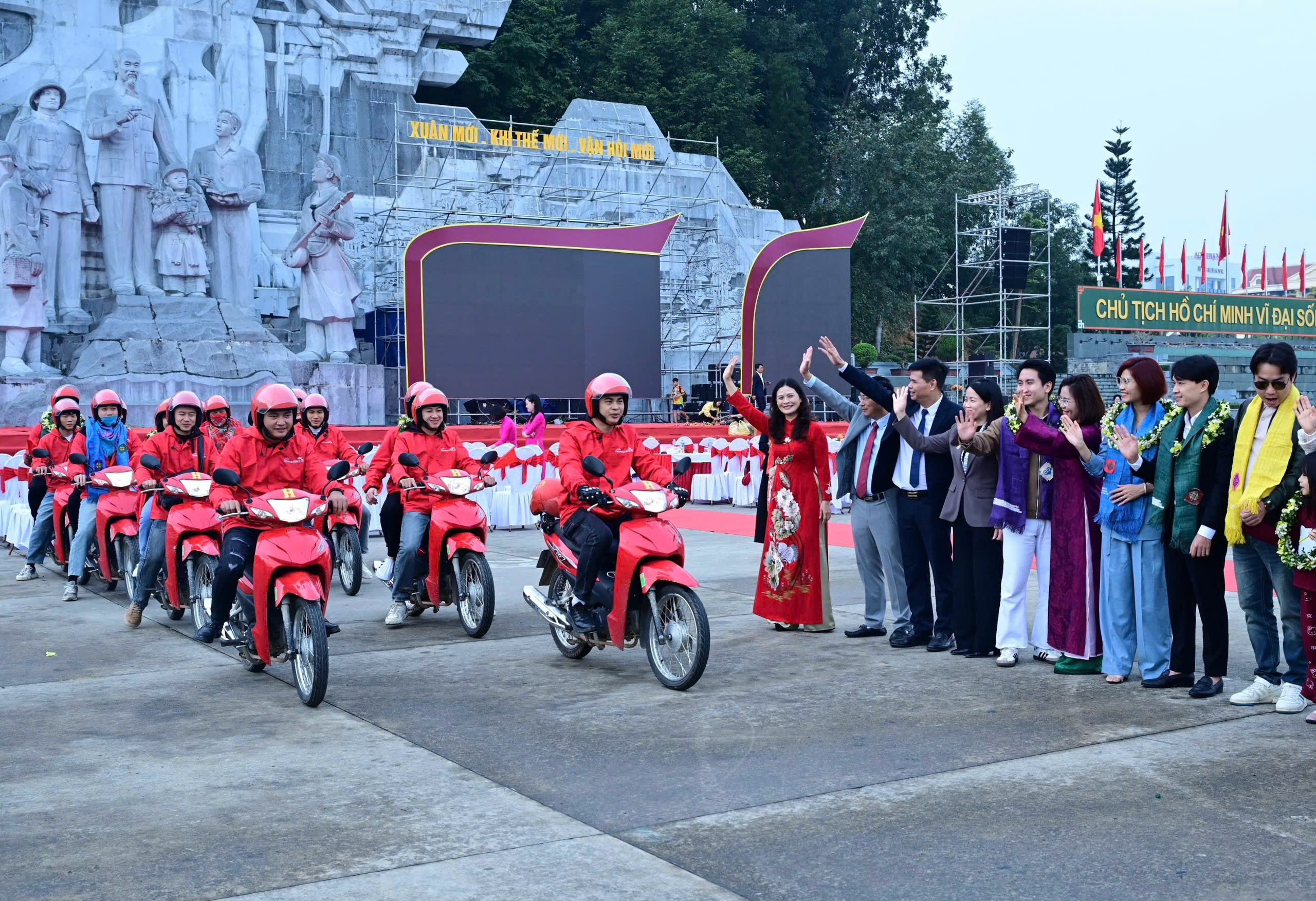 Các đồng chí lãnh đạo và đại biểu tiễn đoàn khách đầu tiên khởi hành khám phá Tuyên Quang.
