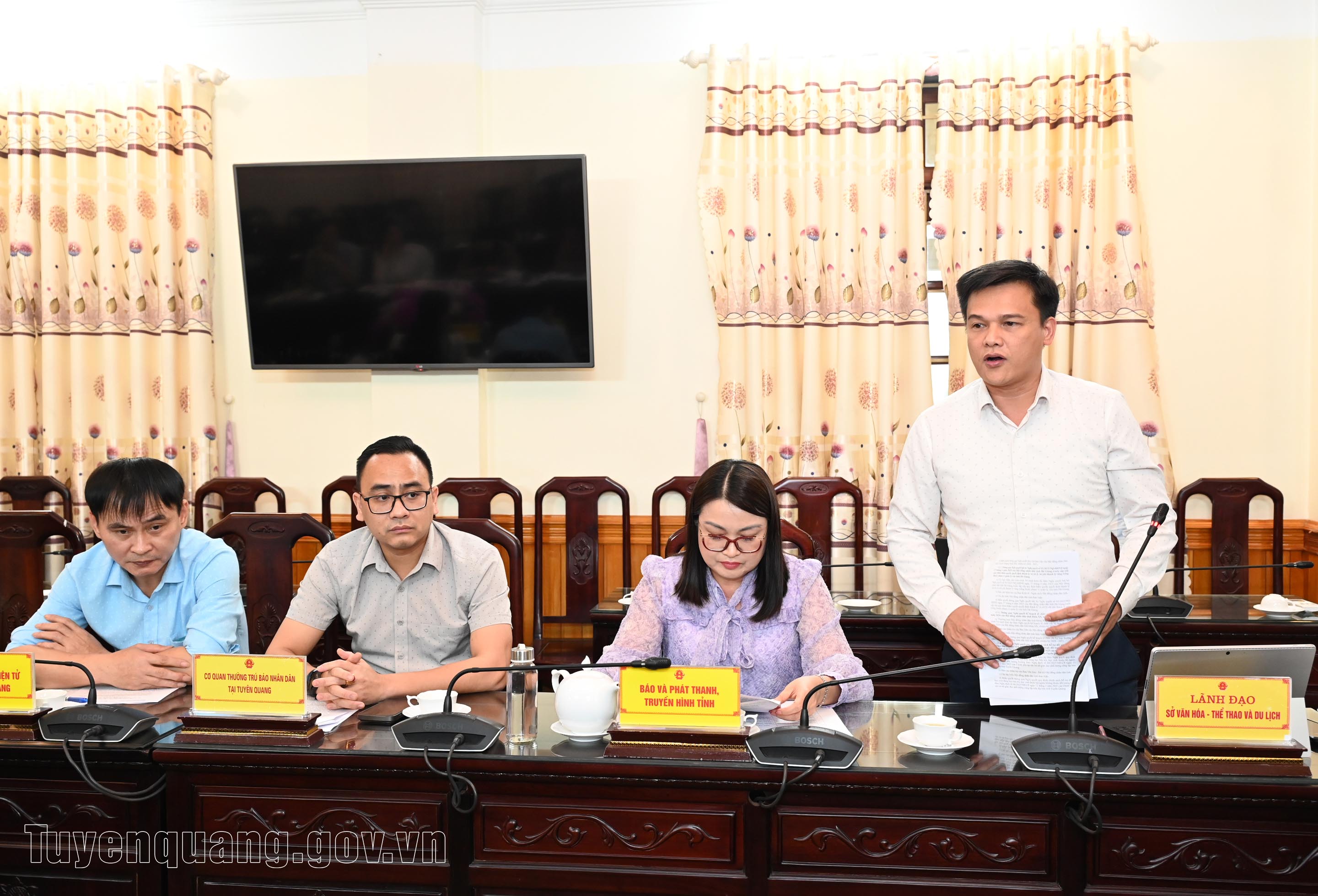Lãnh đạo Sở Văn hóa, Thể thao và Du lịch phát biểu tham luận tại họp báo.