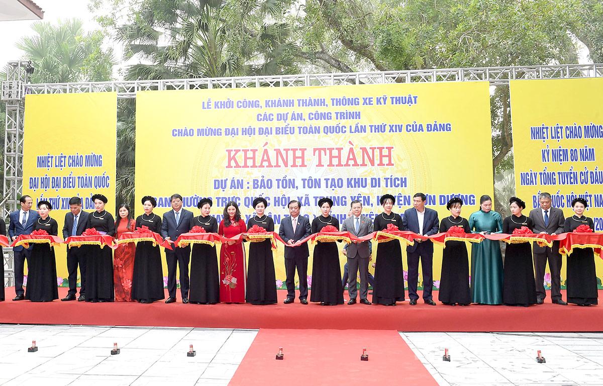 Các đồng chí lãnh đạo và đại biểu cắt băng khánh thành Dự án Bảo tồn, tôn tạo Khu di tích Ban Thường trực Quốc hội