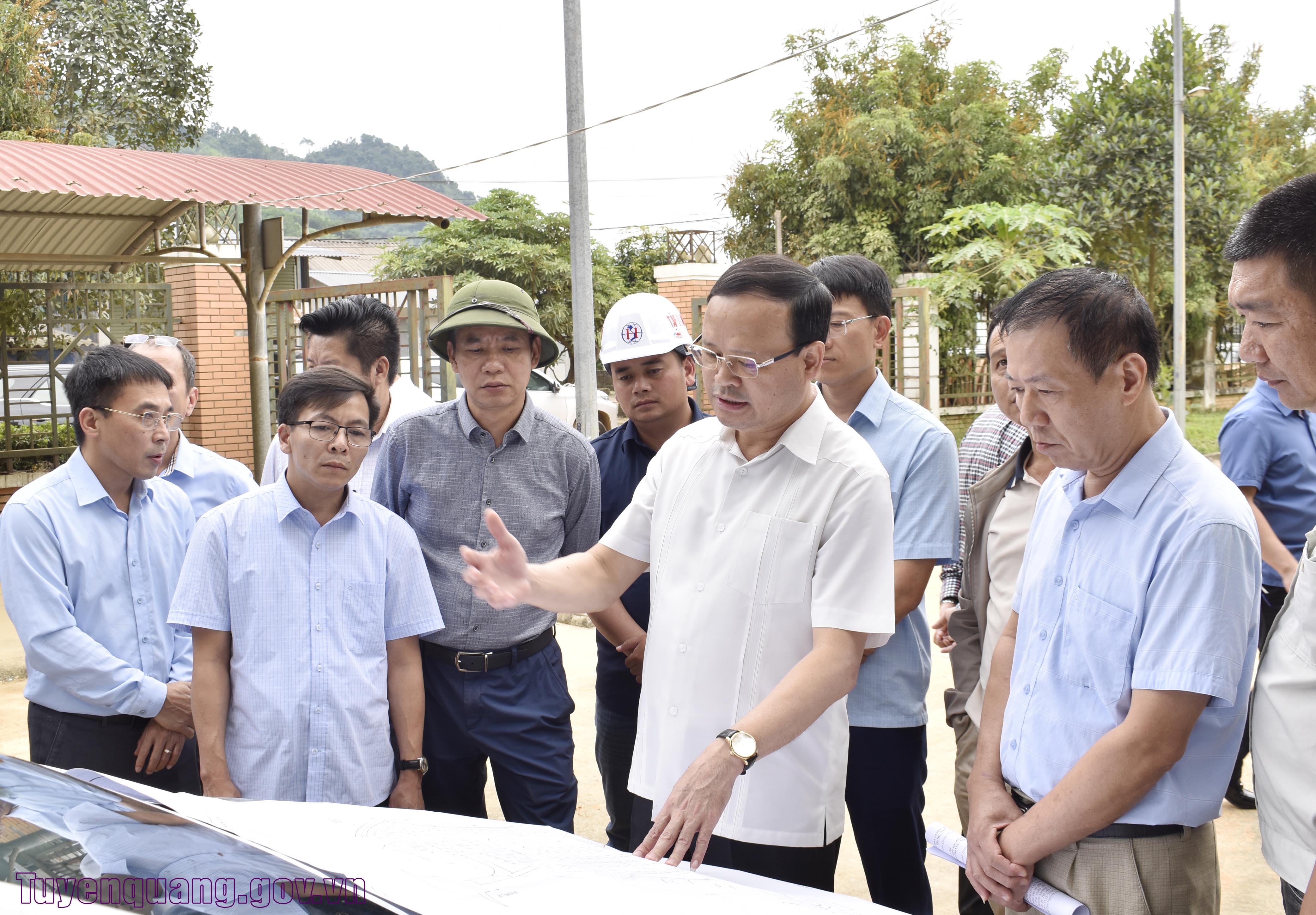 Đồng chí Phó Chủ tịch Thường trực UBND tỉnh Nguyễn Mạnh Tuấn kiểm tra tiến độ xây dựng khu tái định cư tại xã Trung Sơn.