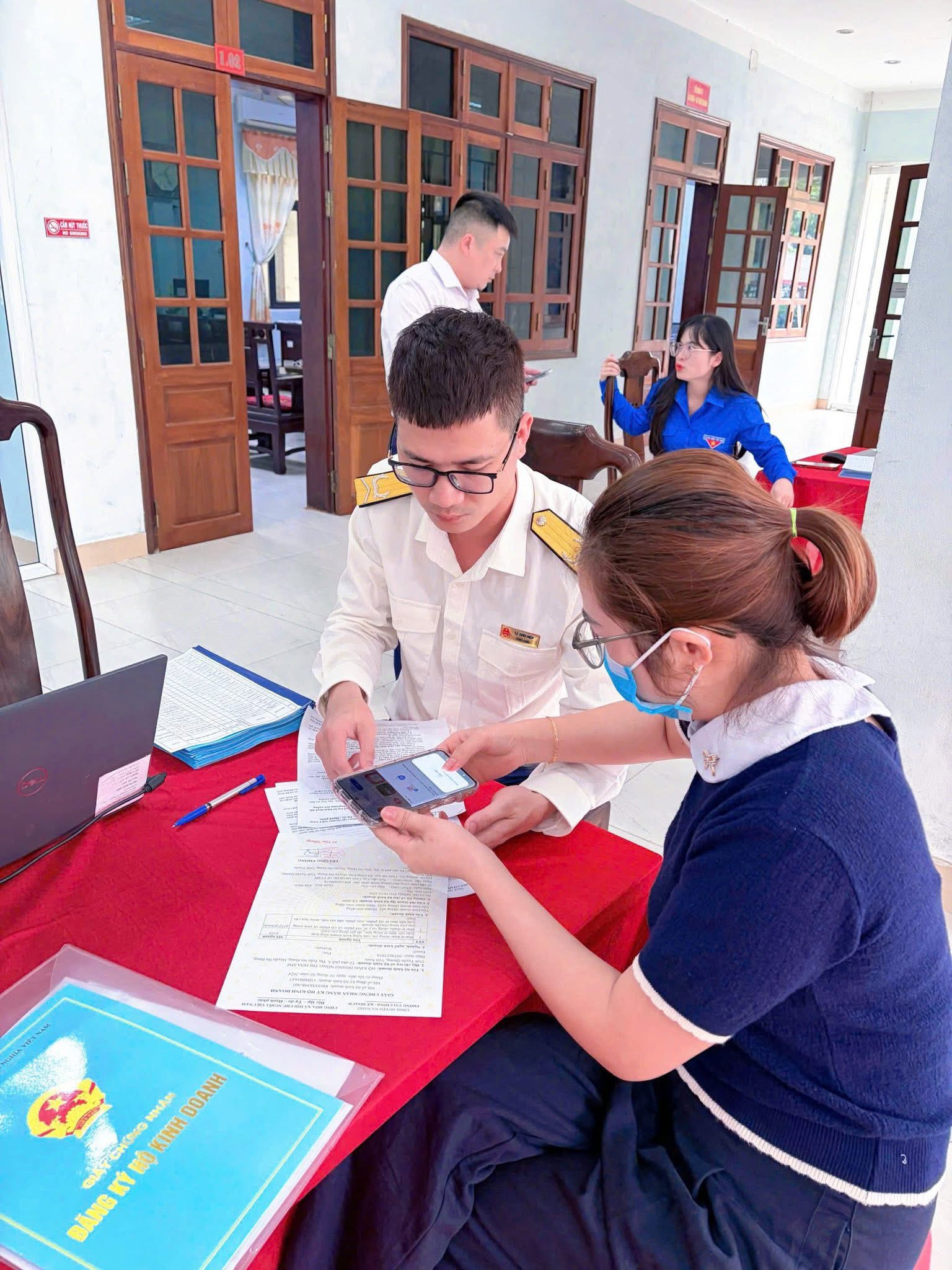 Cán bộ ngành Thuế tỉnh Tuyên Quang ra quân tuyên truyền, hướng dẫn, hỗ trợ hộ kinh doanh kê khai, nộp thuế theo quy định.