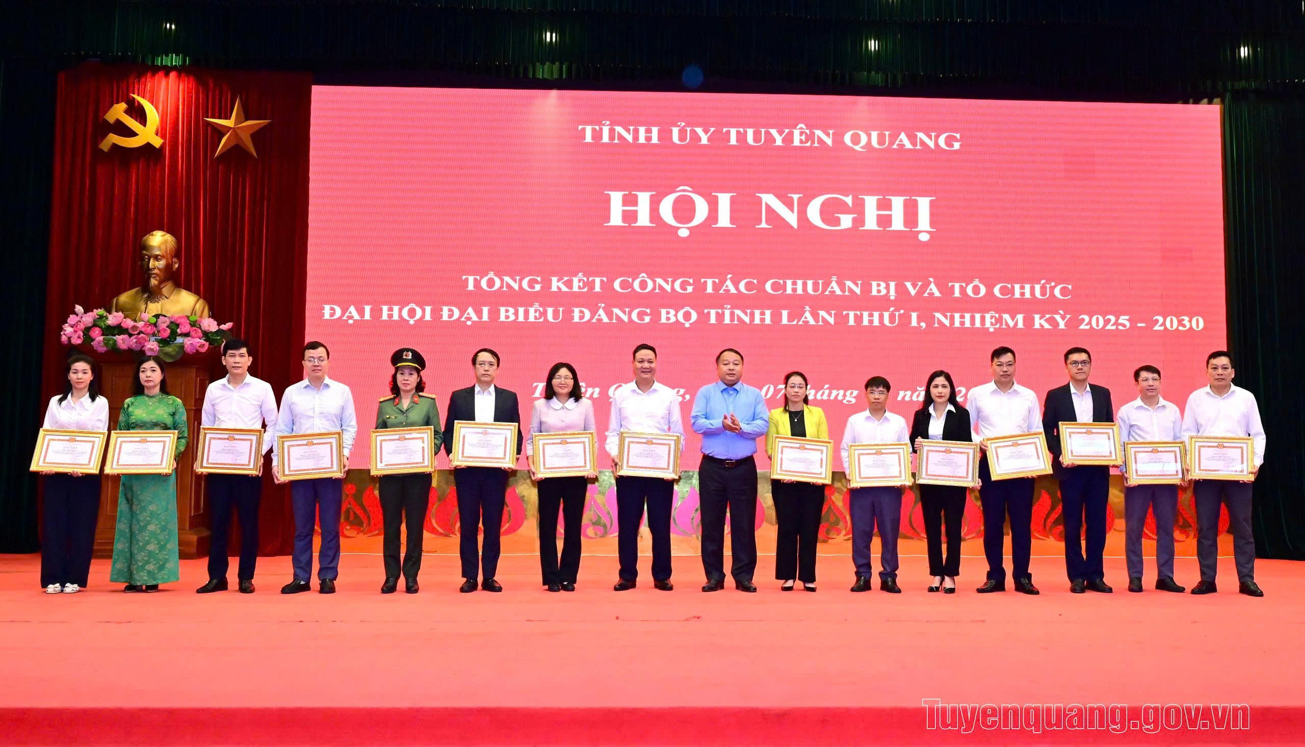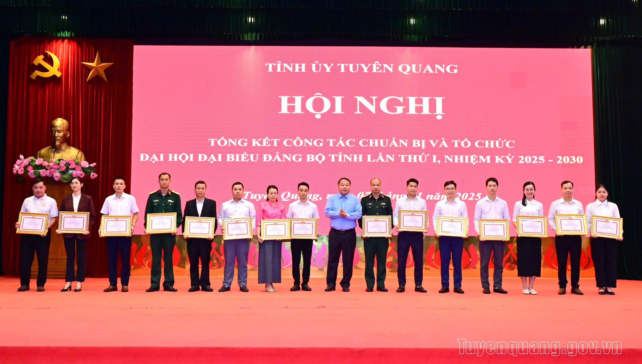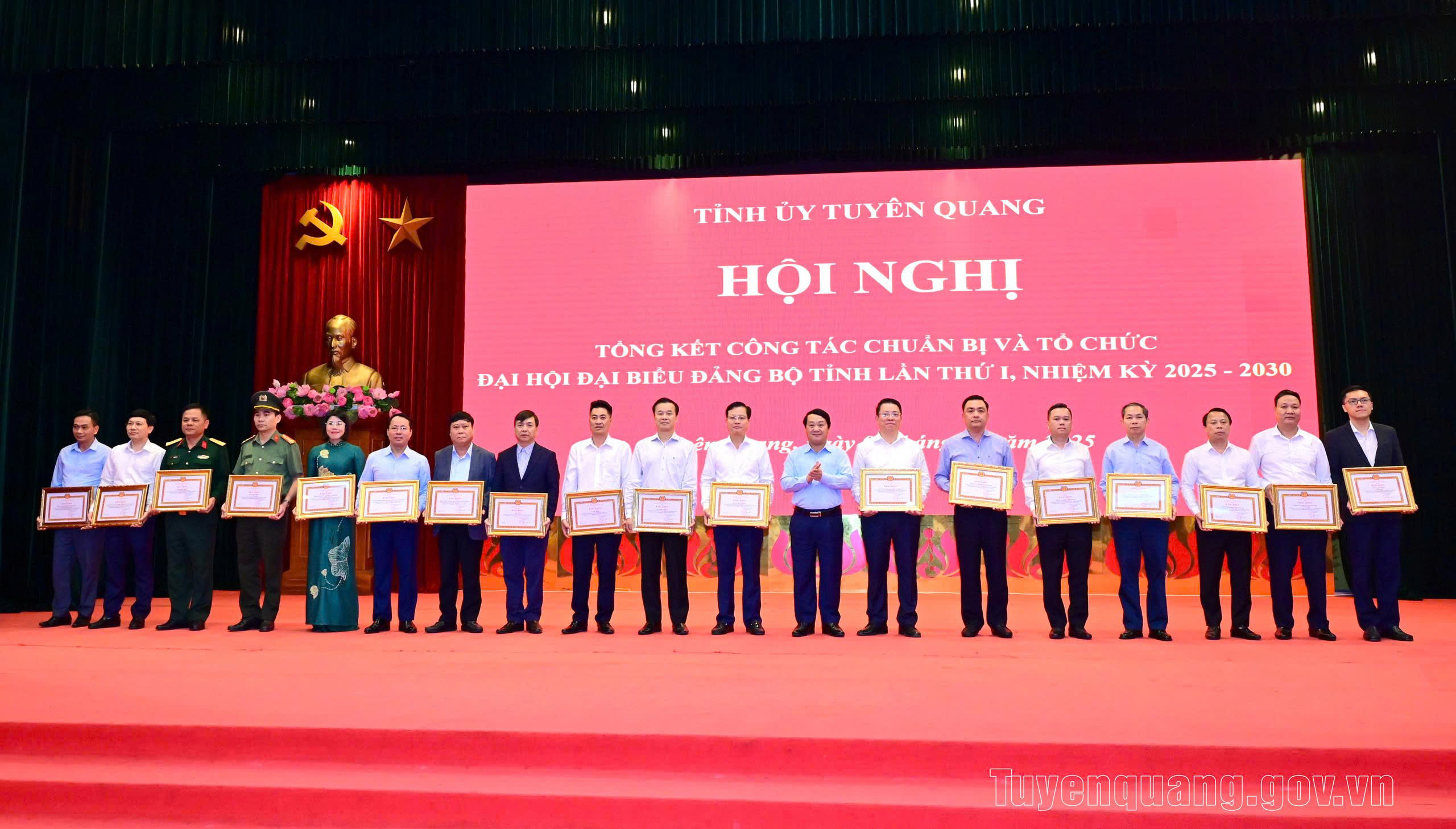 Tại hội nghị đã trao Bằng khen của Chủ tịch UBND tỉnh cho 21 tập thể, 67 cá nhân có thành tích xuất sắc trong công tác chuẩn bị và tổ chức Đại hội đại biểu Đảng bộ tỉnh lần thứ I, nhiệm kỳ 2025-2030.